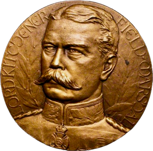Obv: Bust three-quarters left, uniformed, LORD KITCHENER FIELD-MARSHAL;