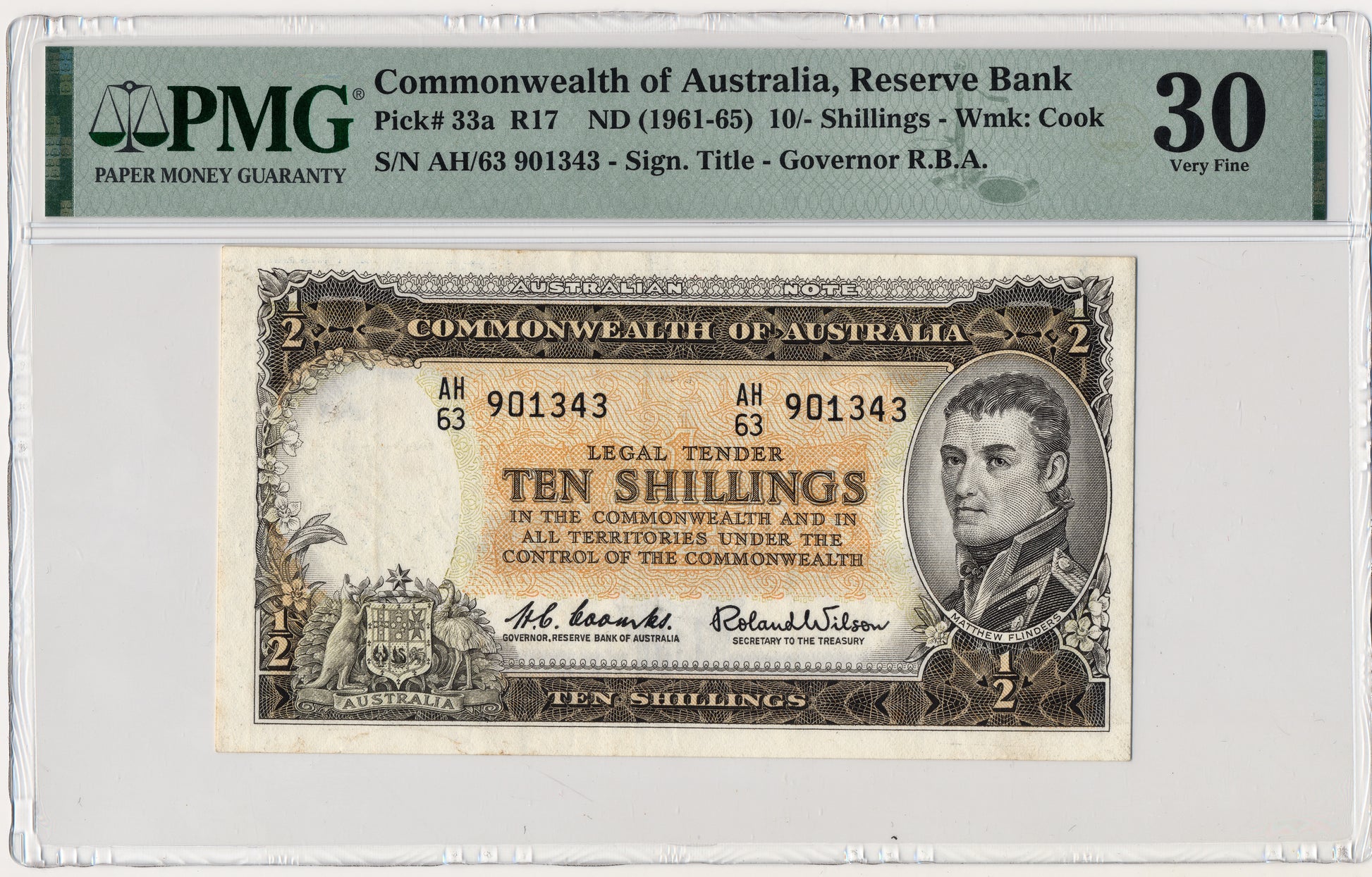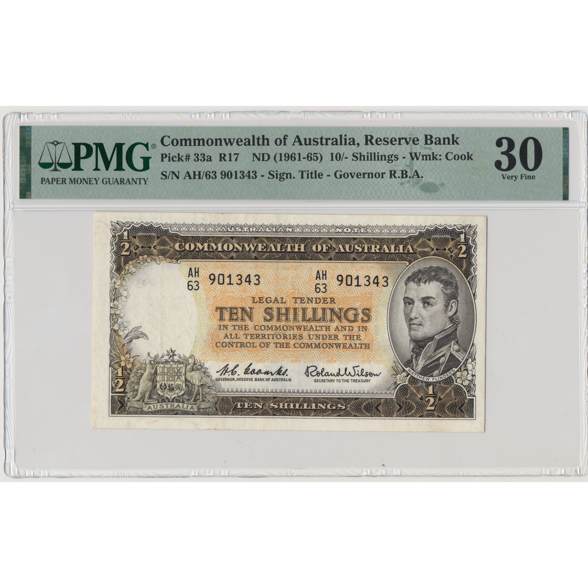 AUSTRALIA P.33a 1961-1965 10 Shillings VF 30