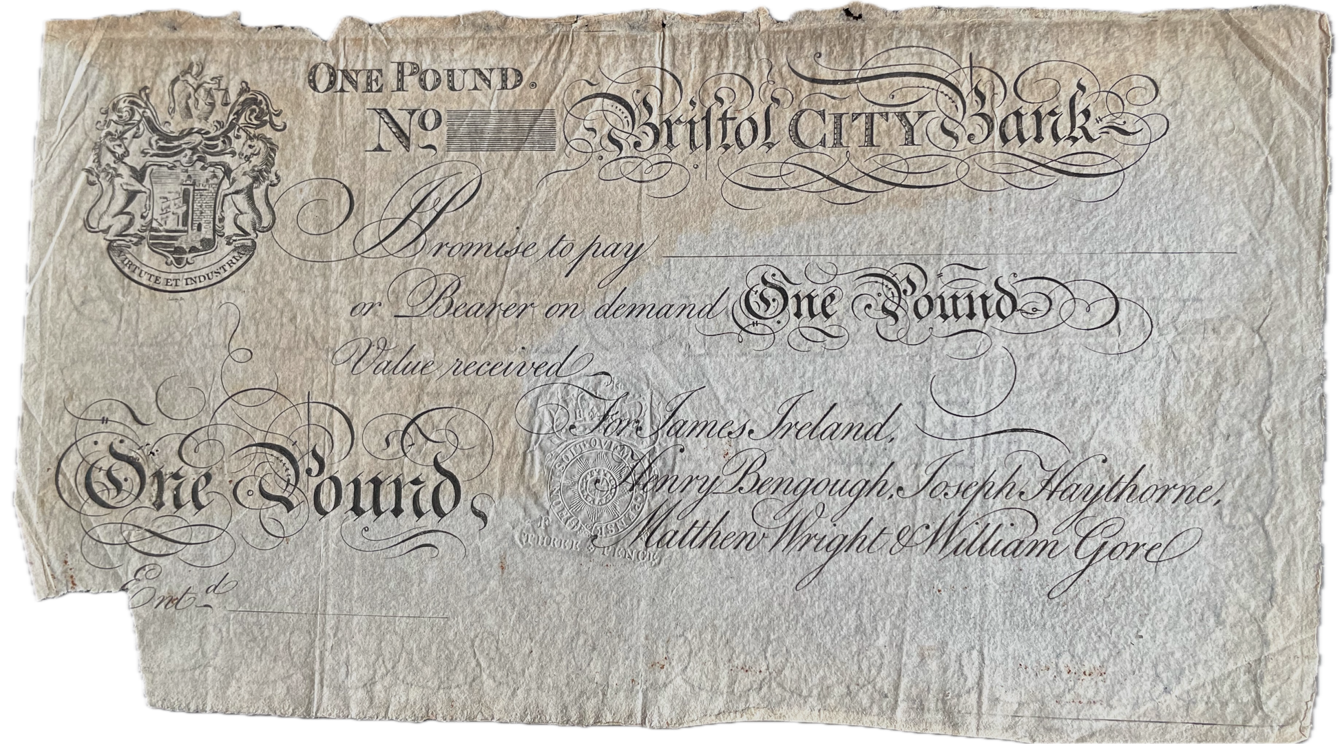 Bristol City Bank 18__ £1 banknote Outing 316c Rare