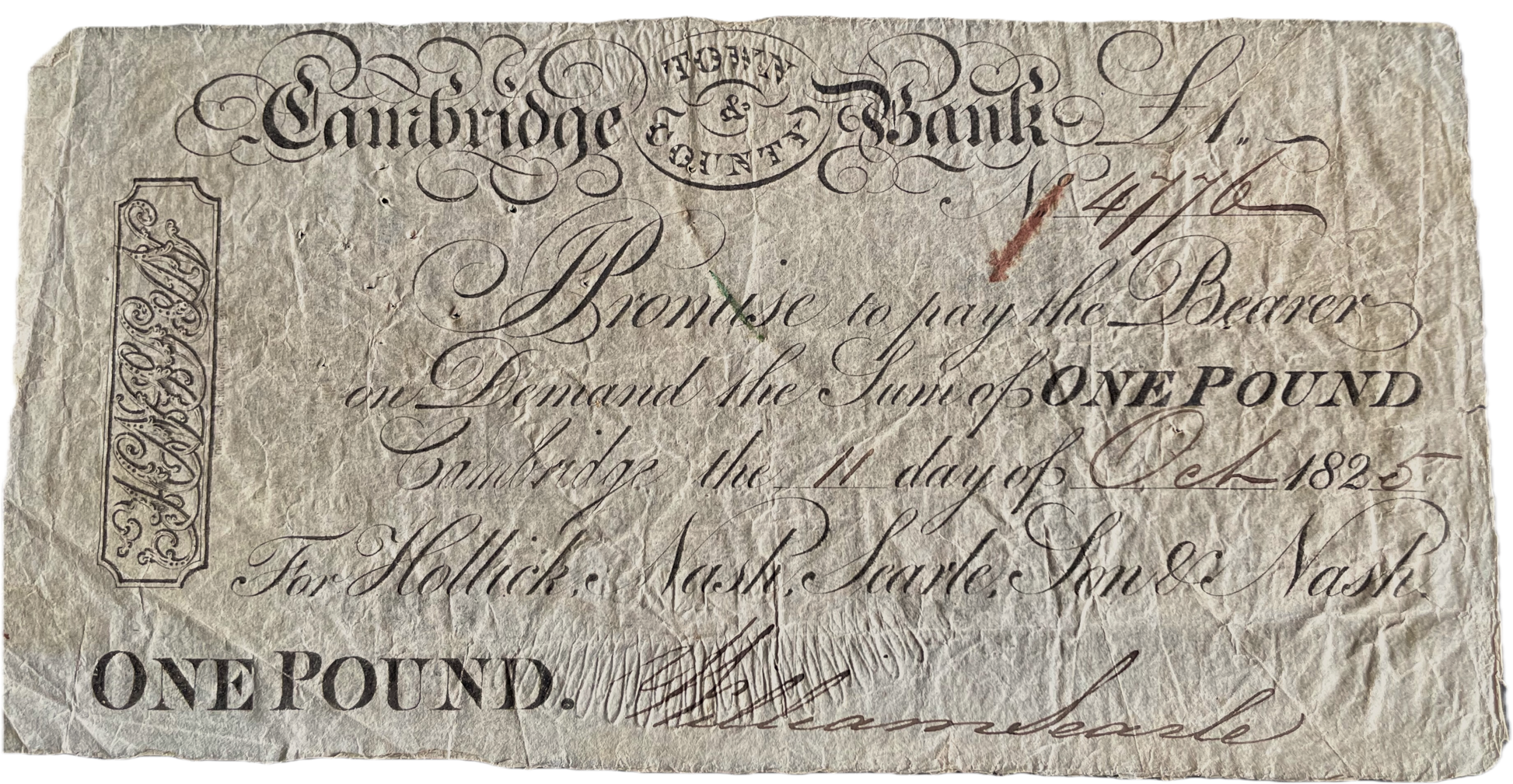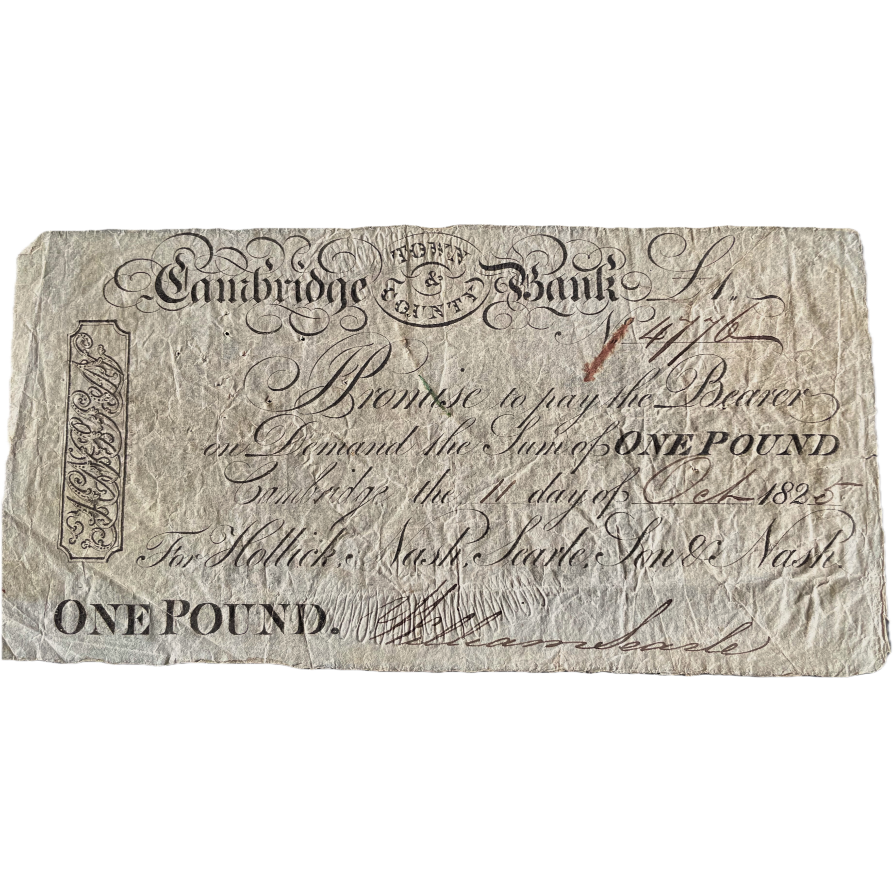 Cambridge Town & County Bank 1825 £5 banknote Outing 409a