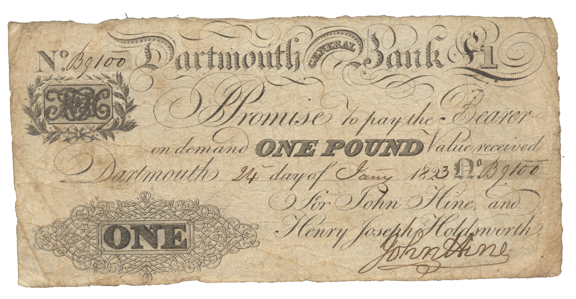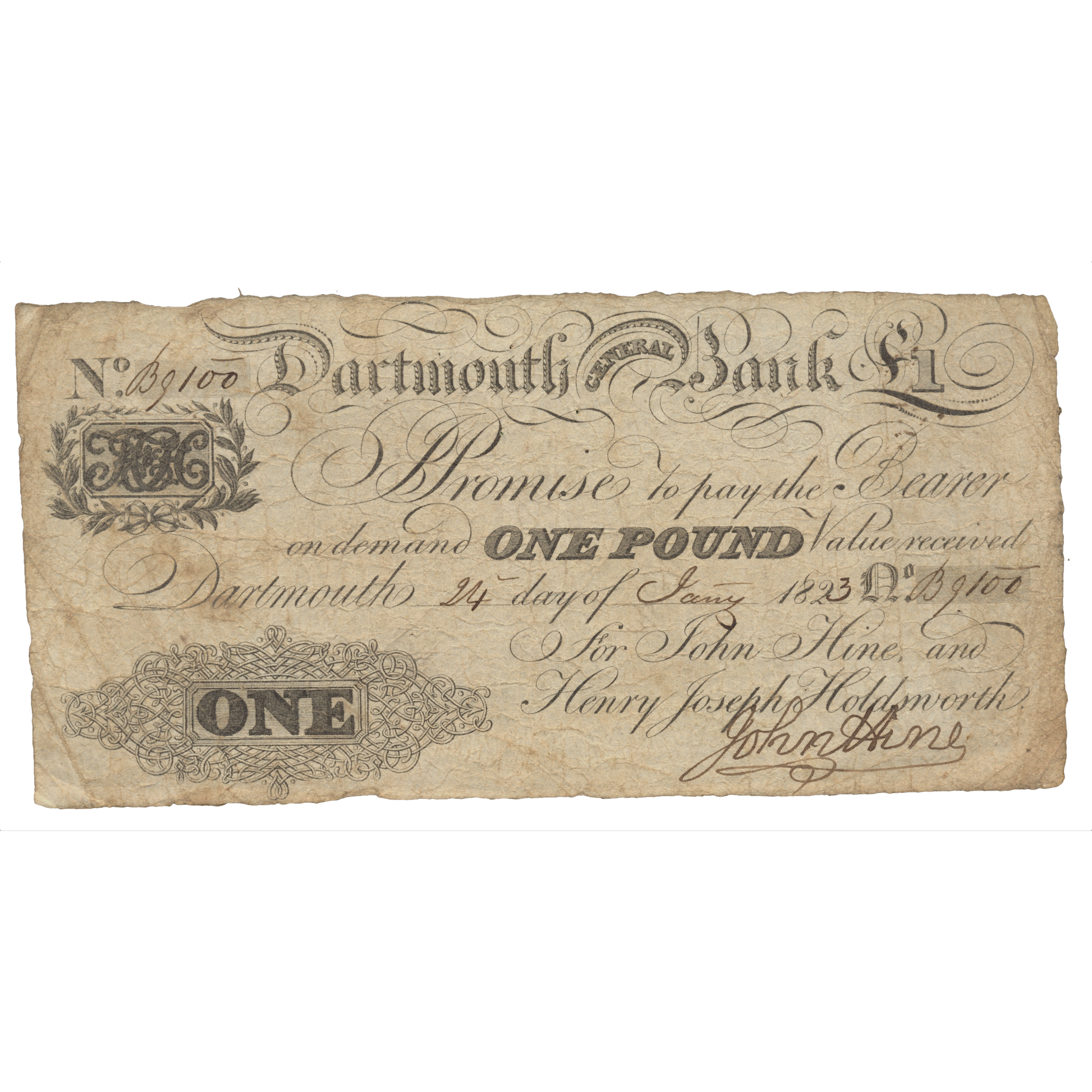 Dartmouth General Bank 1823 £1 banknote NVF Outing 639a