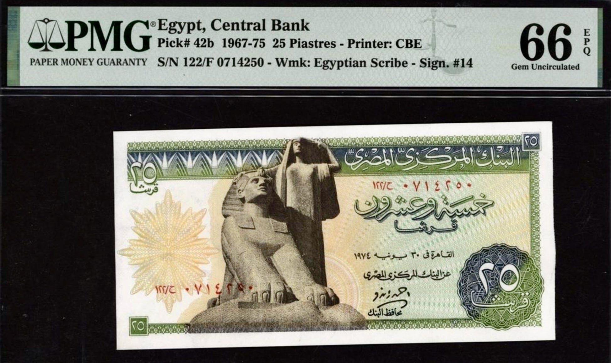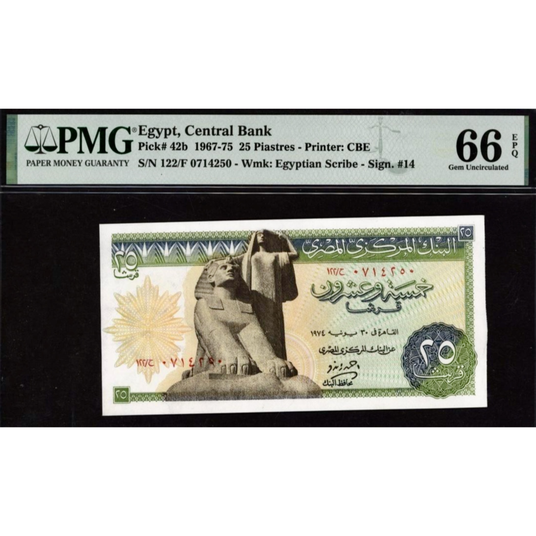 EGYPT P.42b 1967-1975 25 Piastres GEM 66 UNC