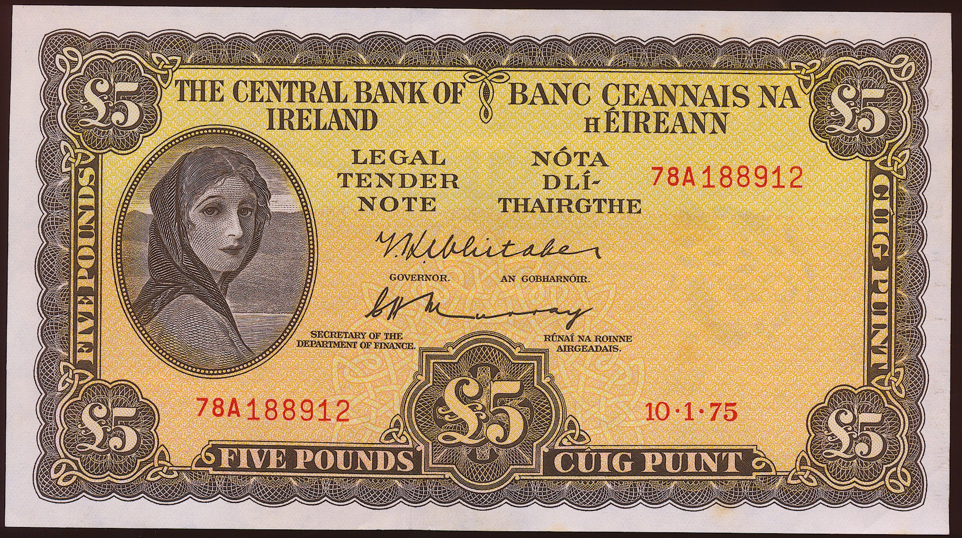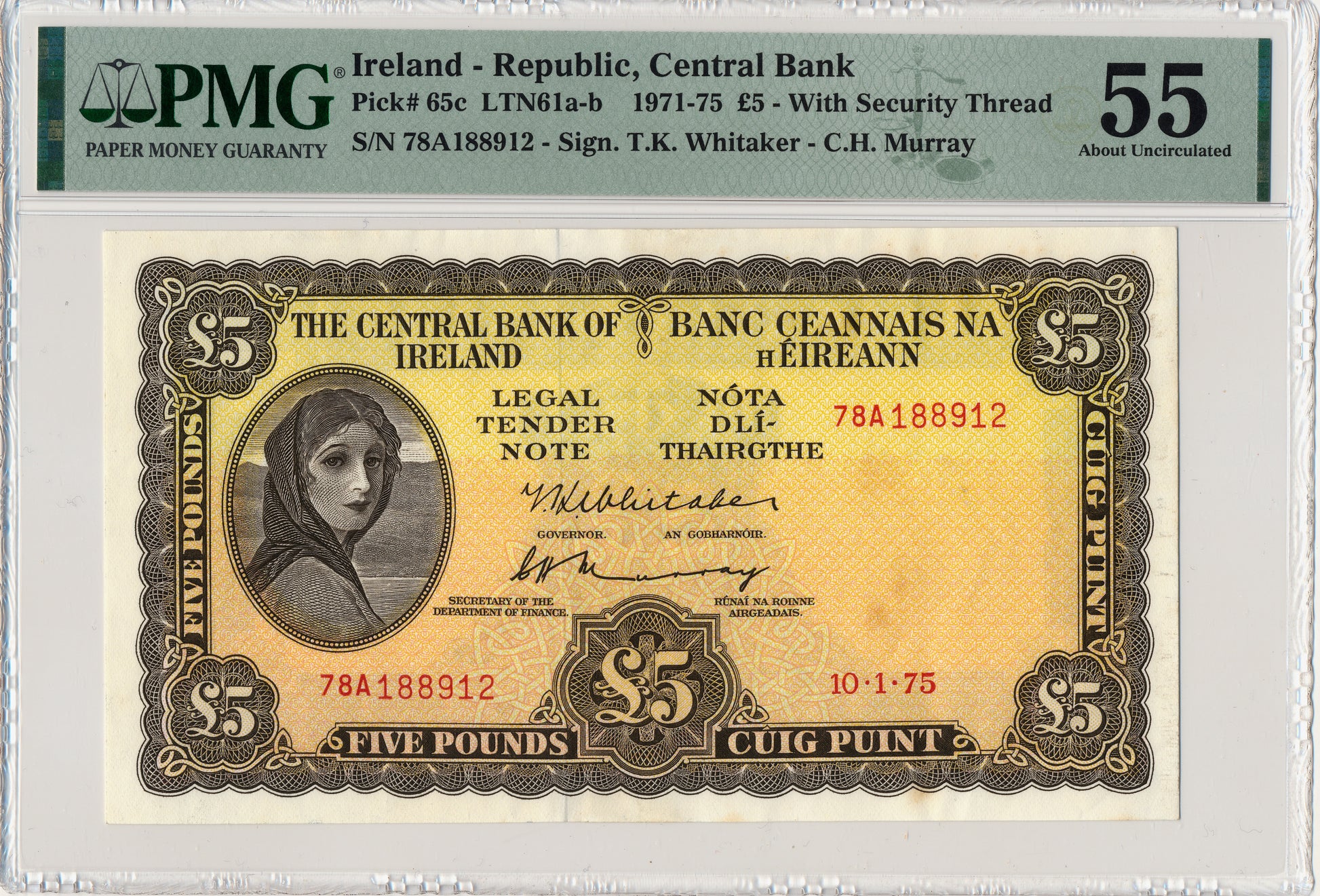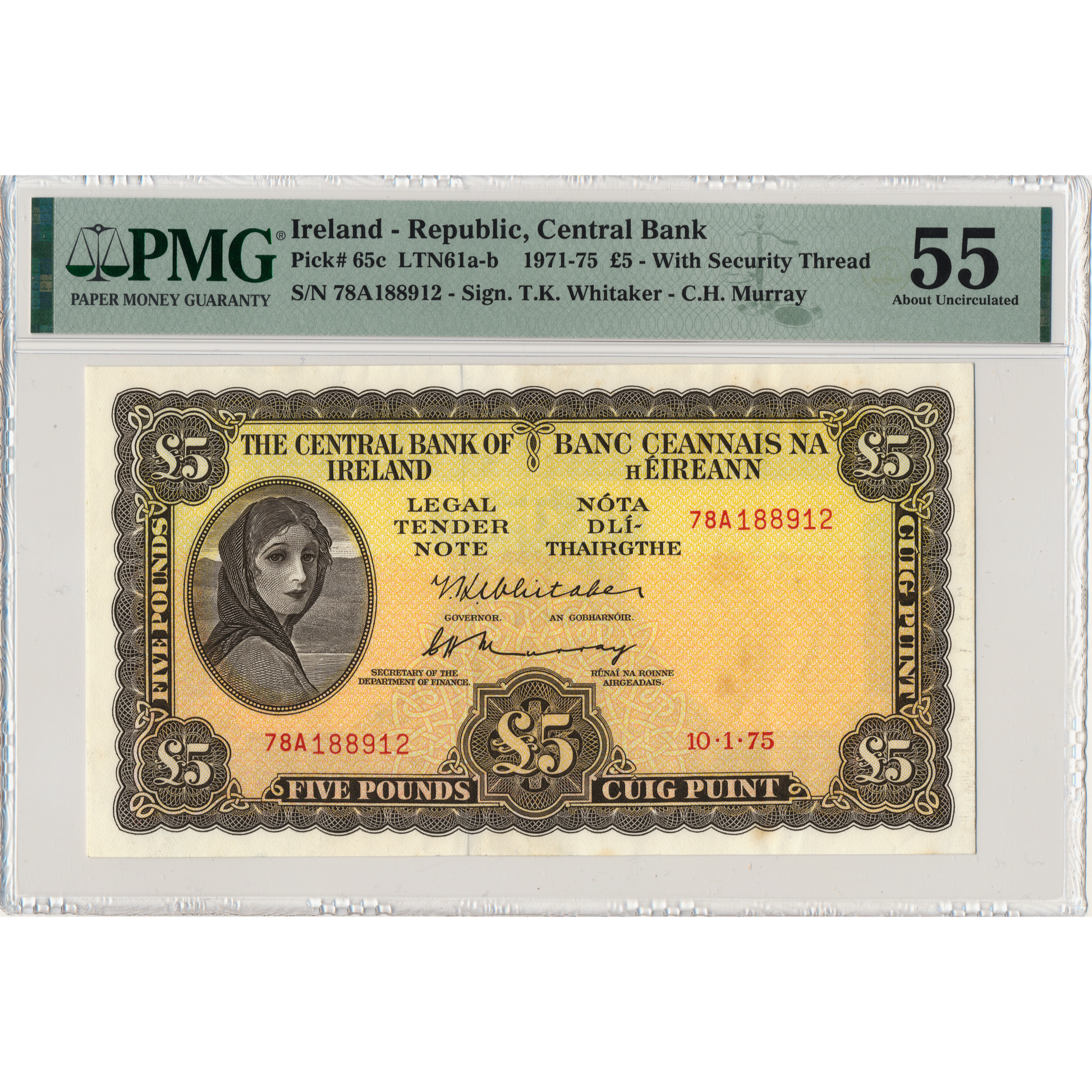 IRELAND P.65c E099 1975 £5 AUNC 55