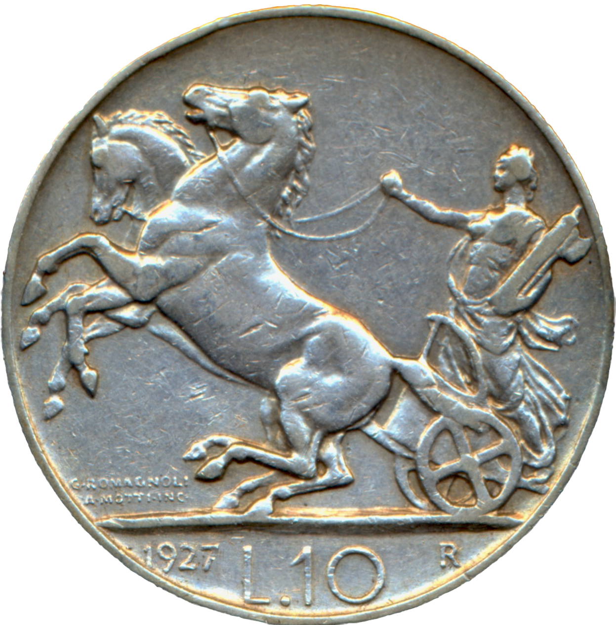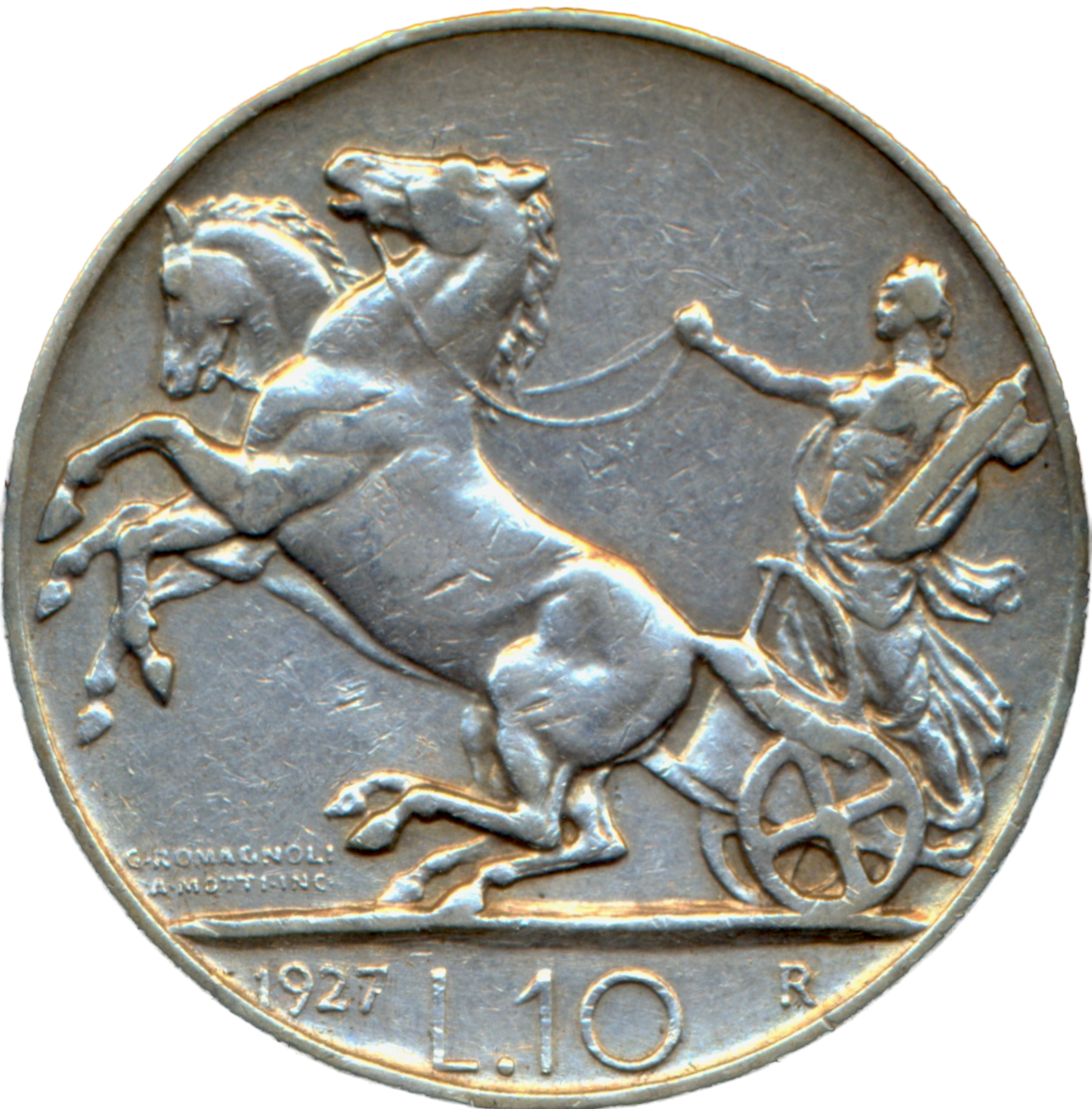 Italy KM68.1 1927 Silver 10 lire GVF