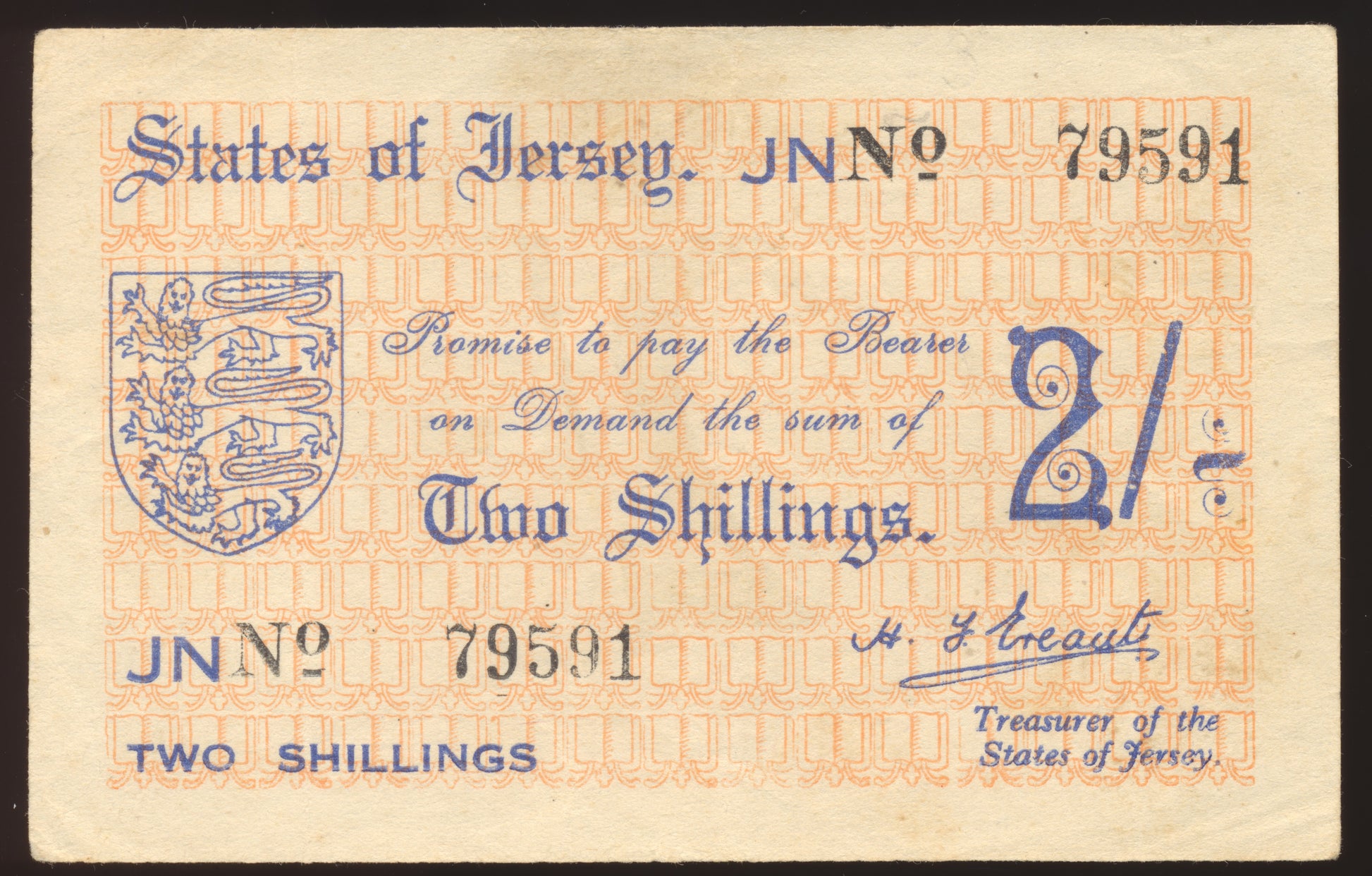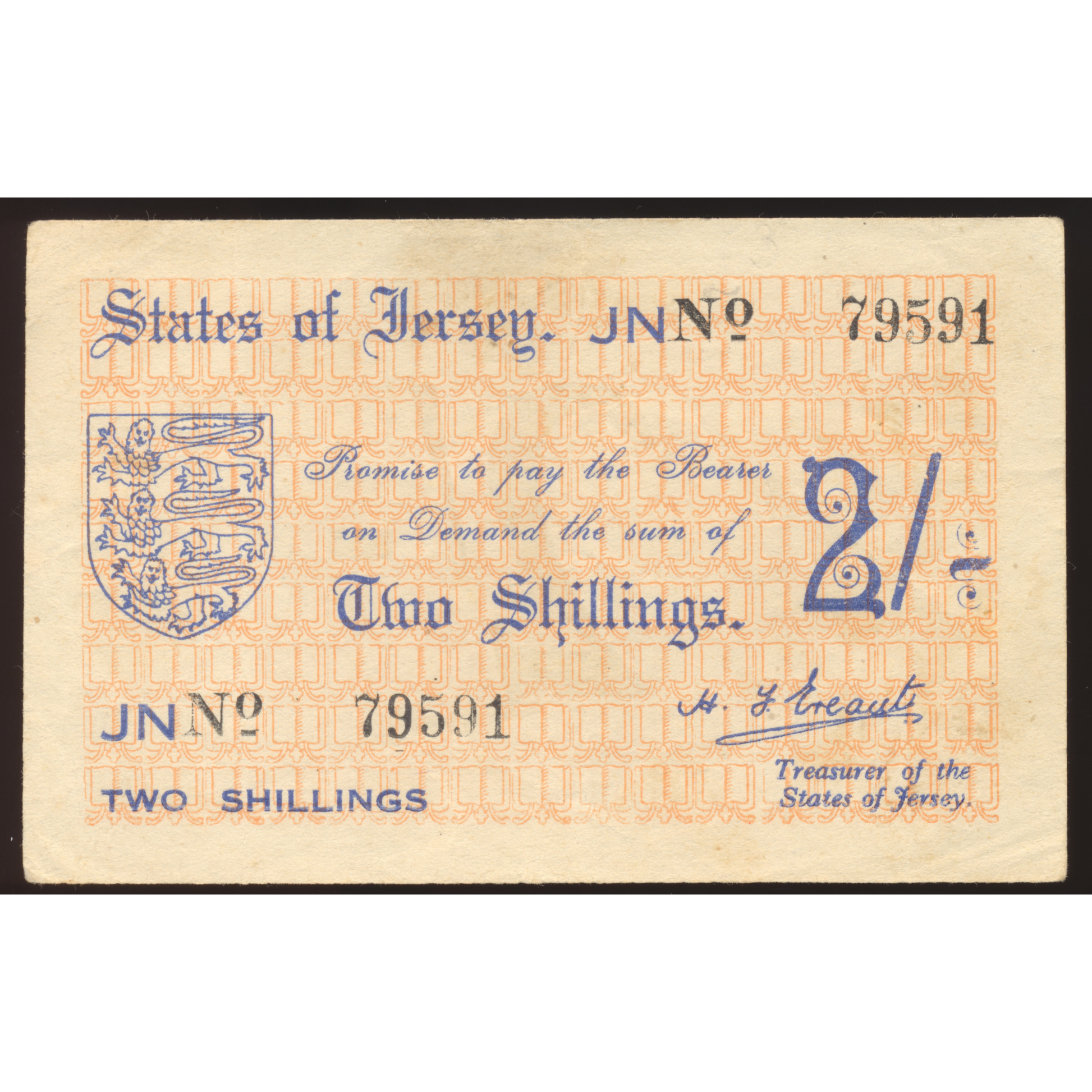 JERSEY P.4a JE3 1942 2 Shillings Choice Very Fine 35