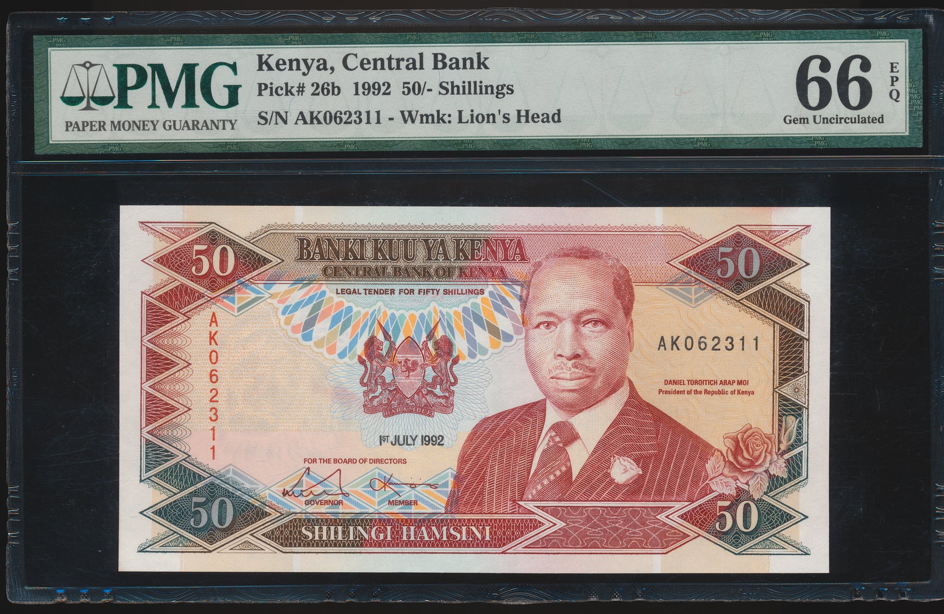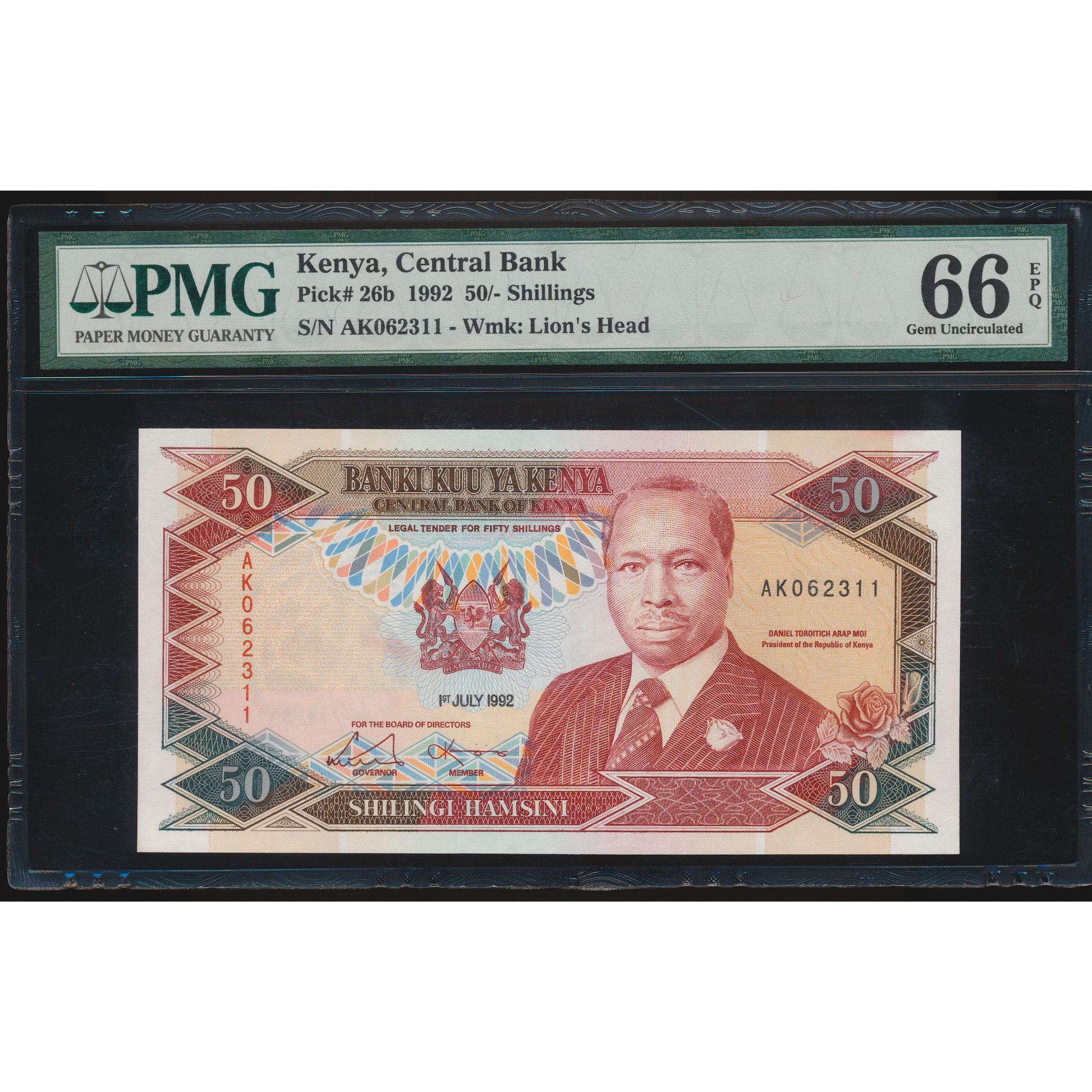 KENYA P.26b 1992 50 shillings Gem UNC 66 EPQ