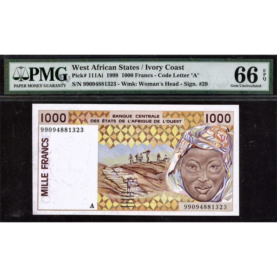 WEST AFRICAN STATES (Ivory Coast) P.111Ai 1999 1000 Francs GEM 66 UNC