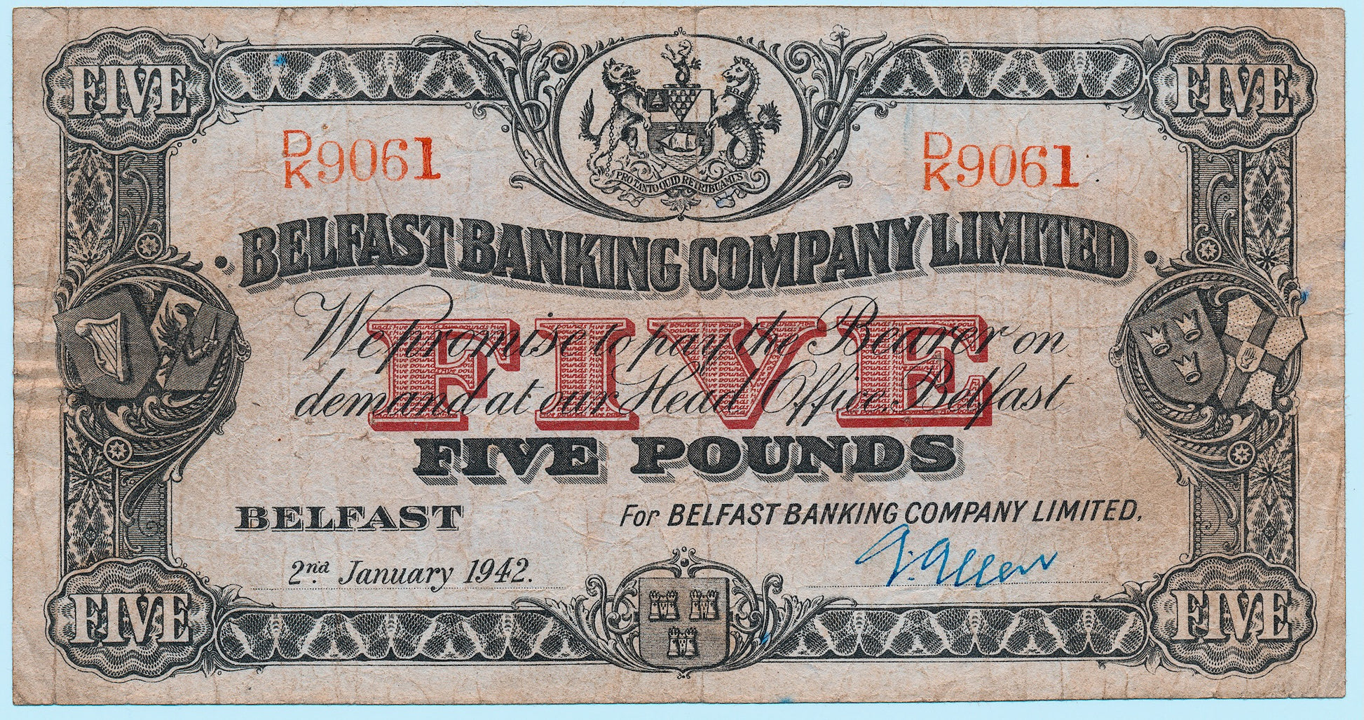 NI302b P.127b 1940 Belfast Banking Company Limited £5 F