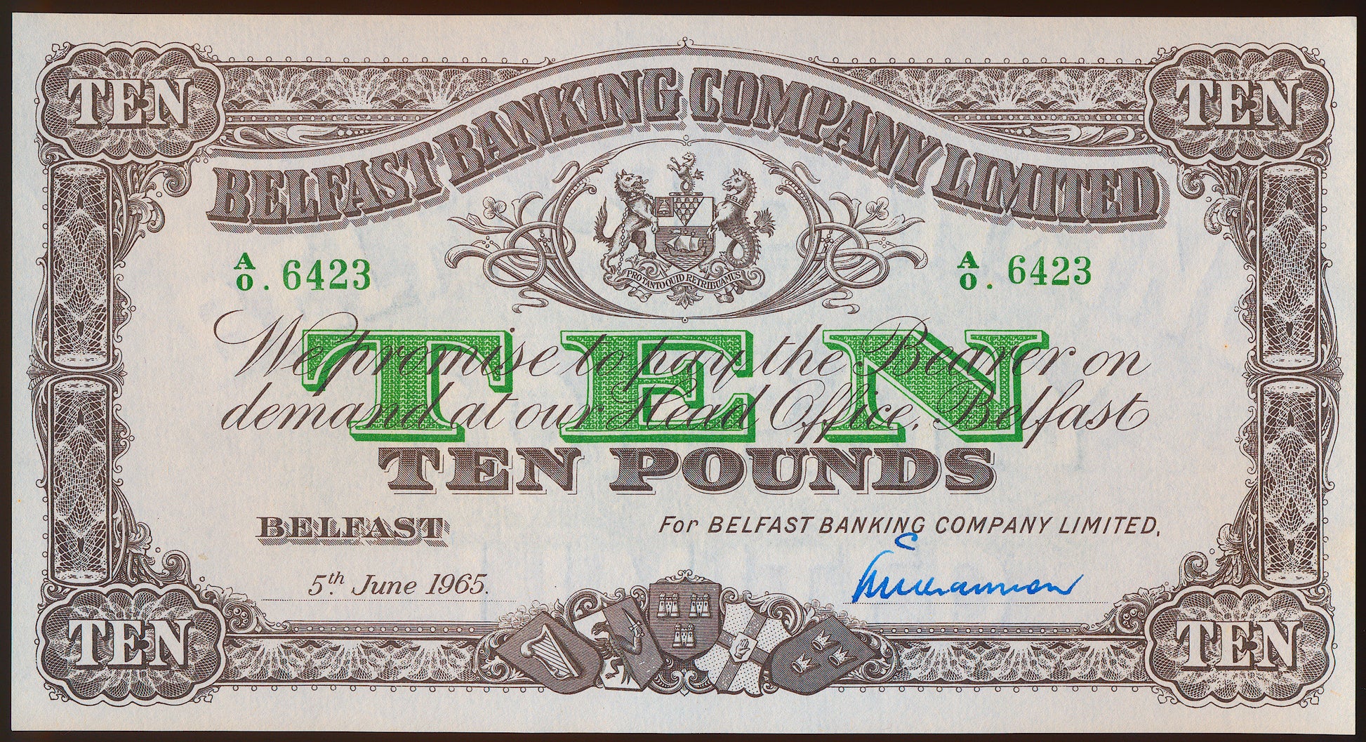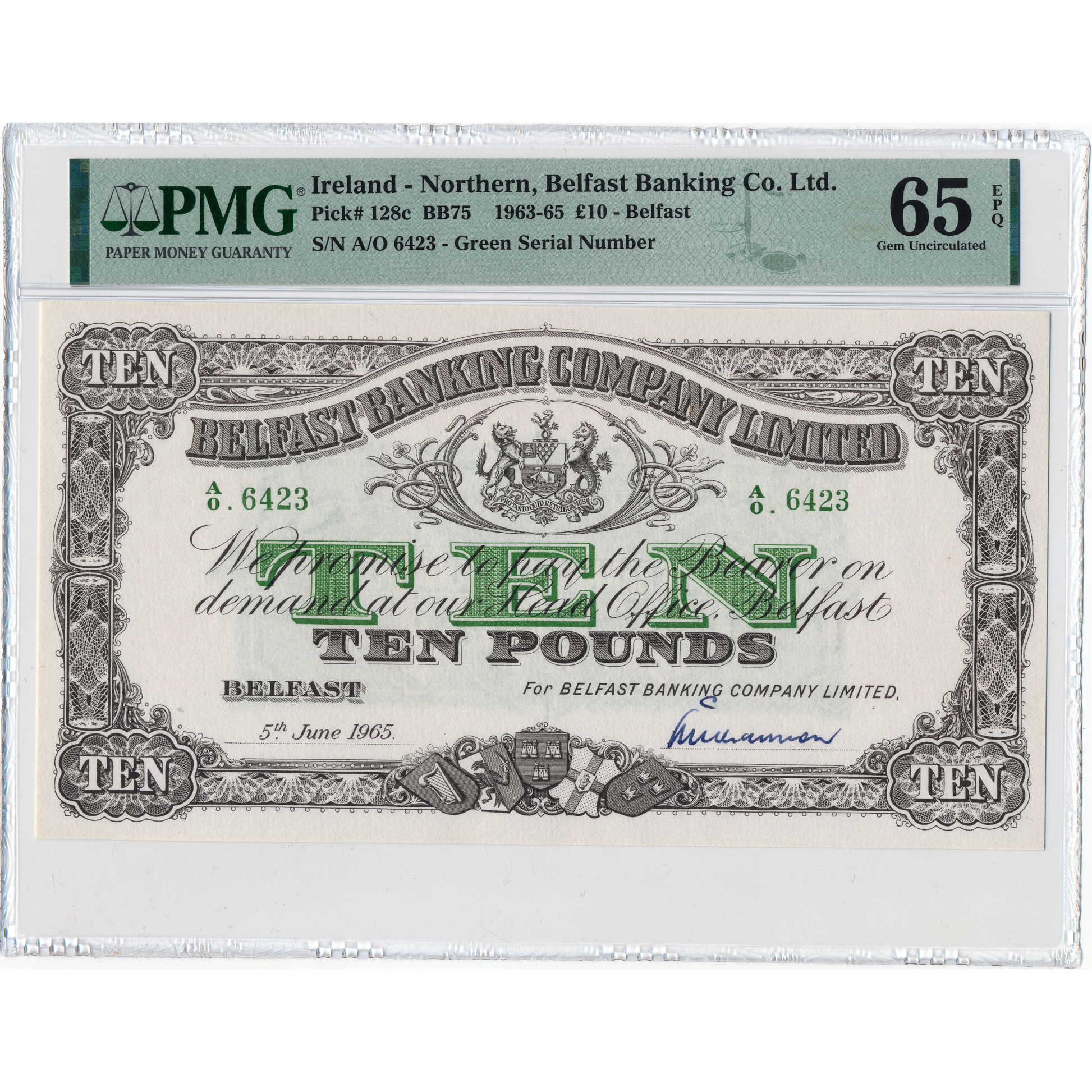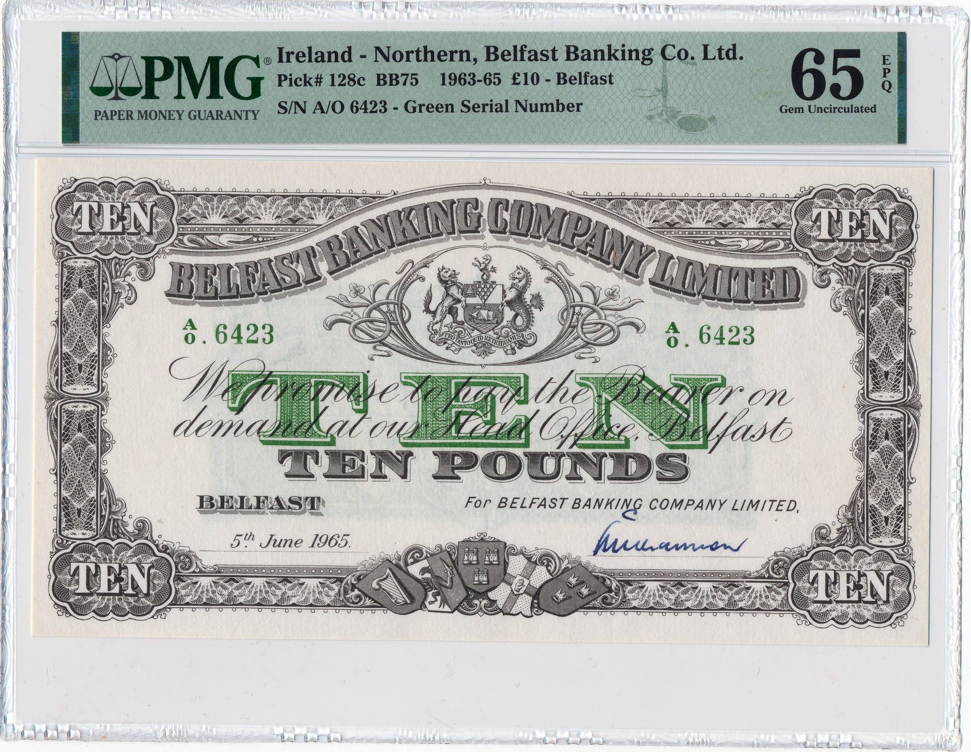 NORTHERN IRELAND P.128c NI303c 1965 Belfast Banking Co Ltd £10 Gem UNC 65 EPQ