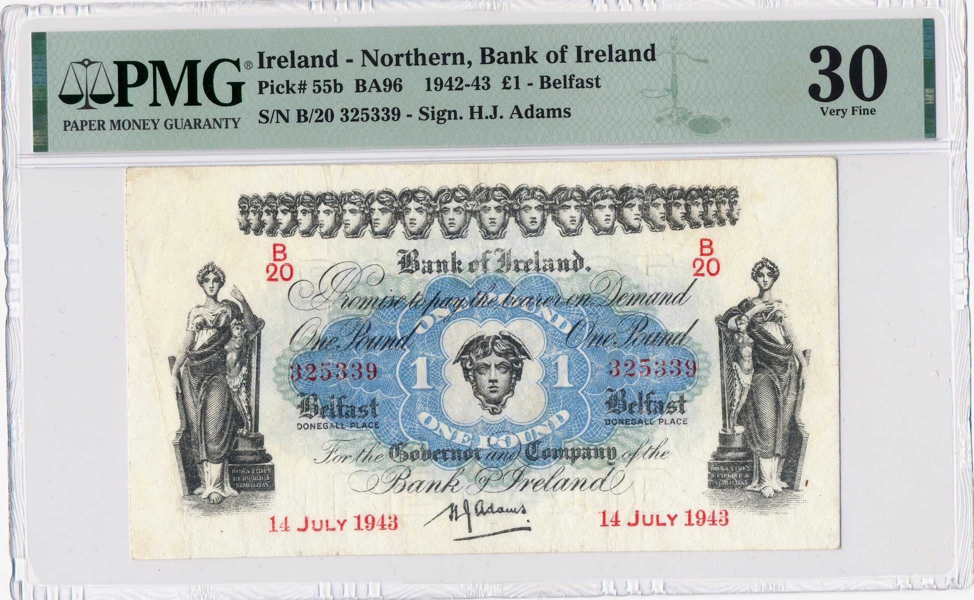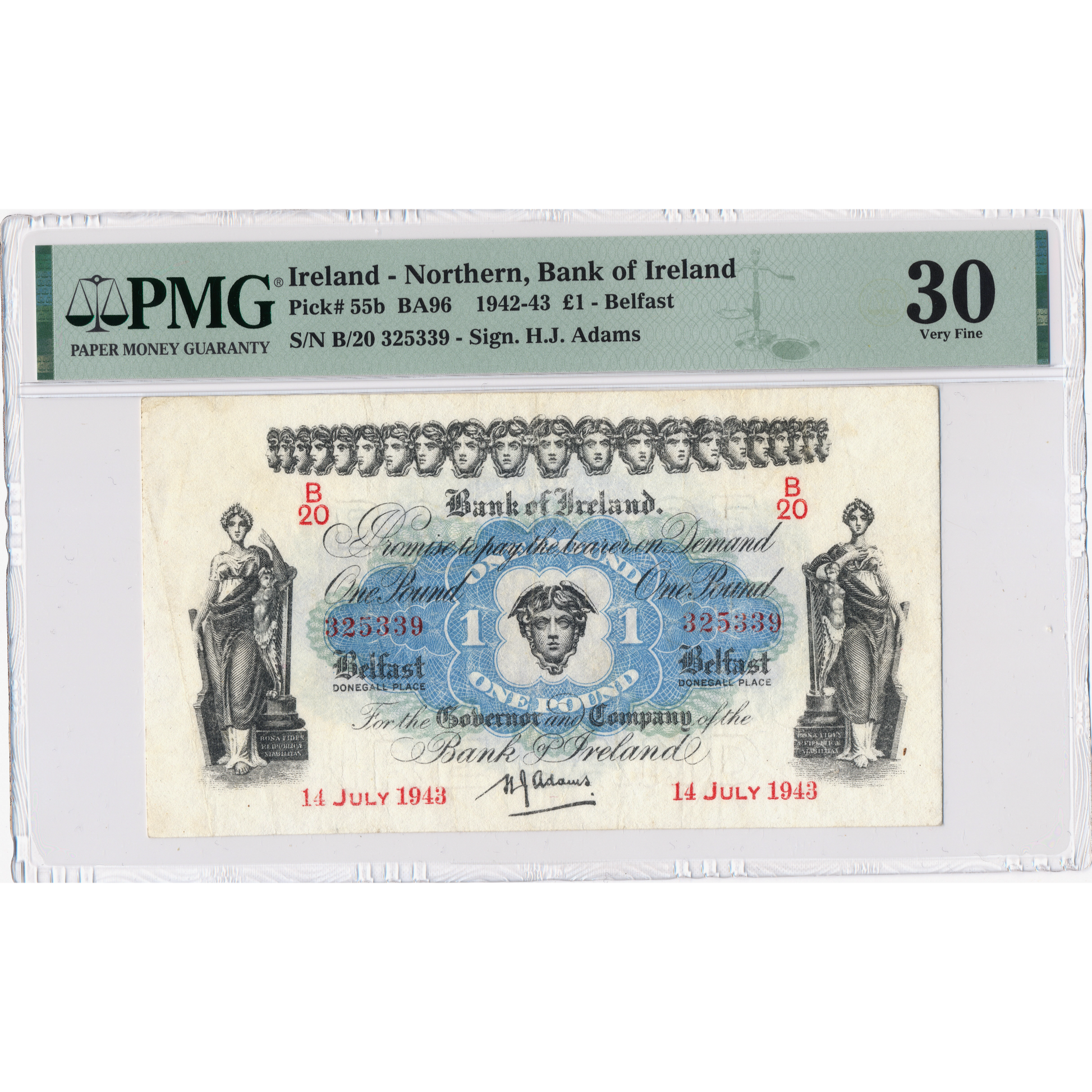 NORTHERN IRELAND P.55b NI202b 1943 Bank of Ireland £1 VF 30