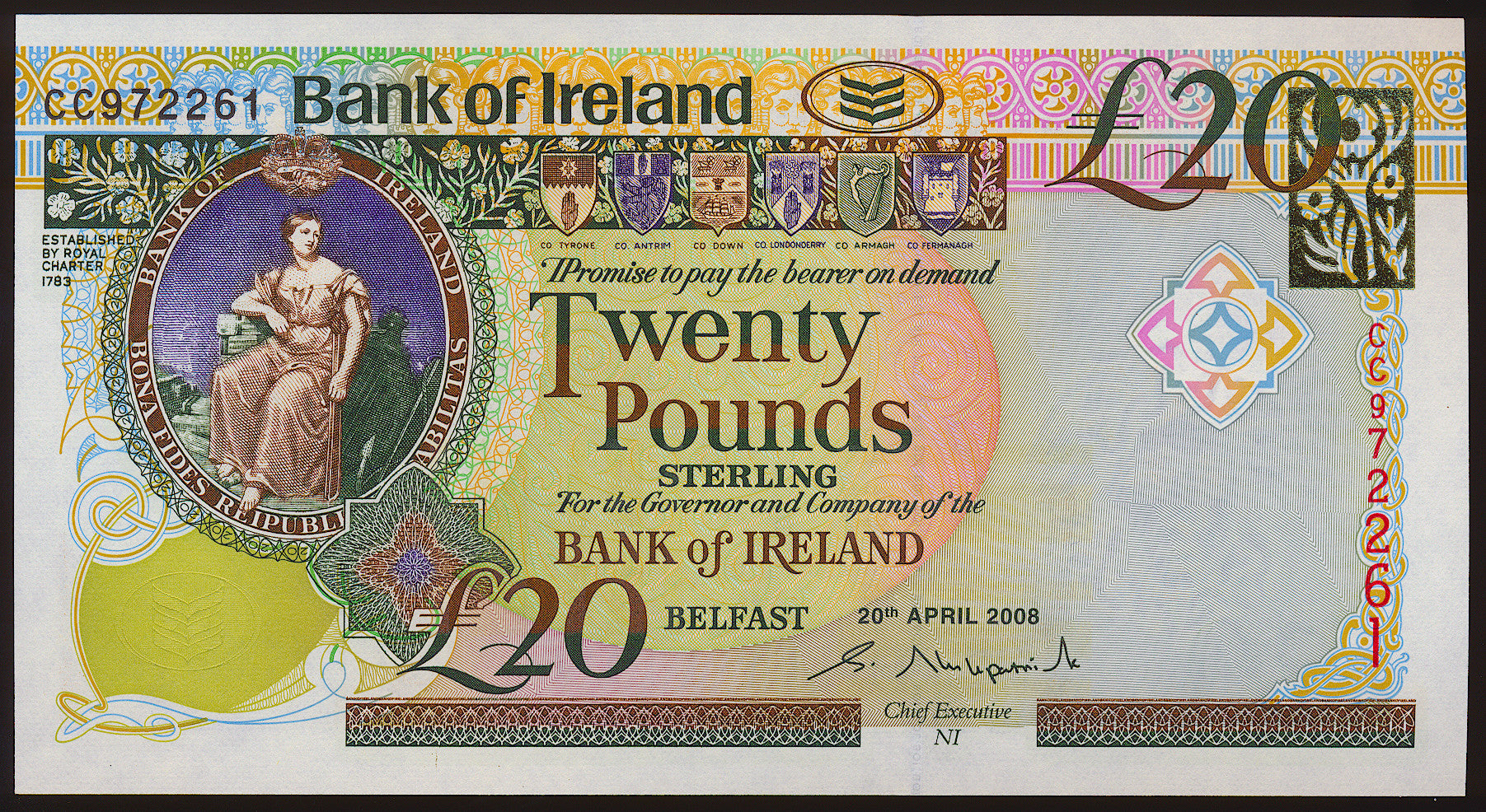 NORTHERN IRELAND P.85a NI237 2008 Bank of Ireland £20 banknote UNC