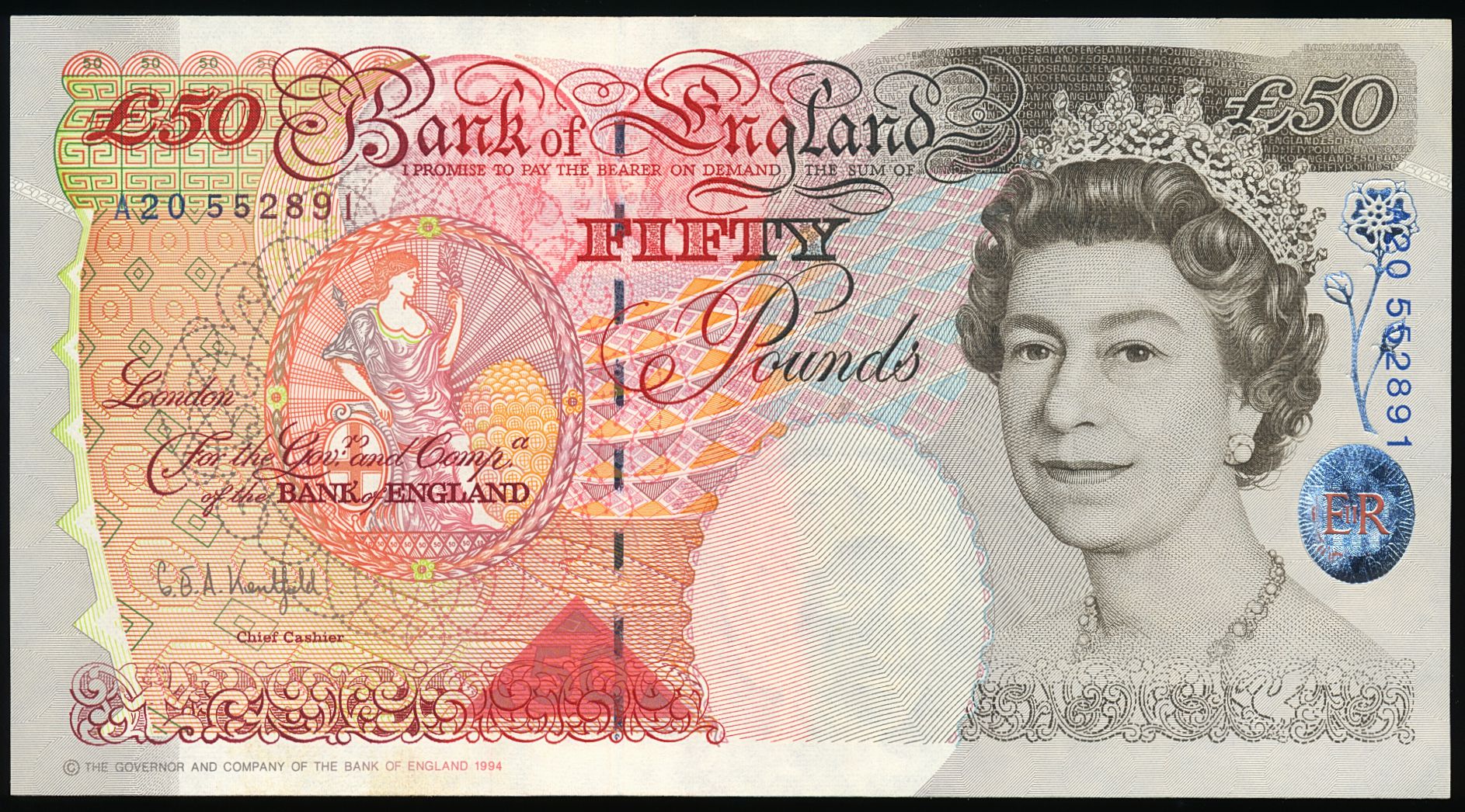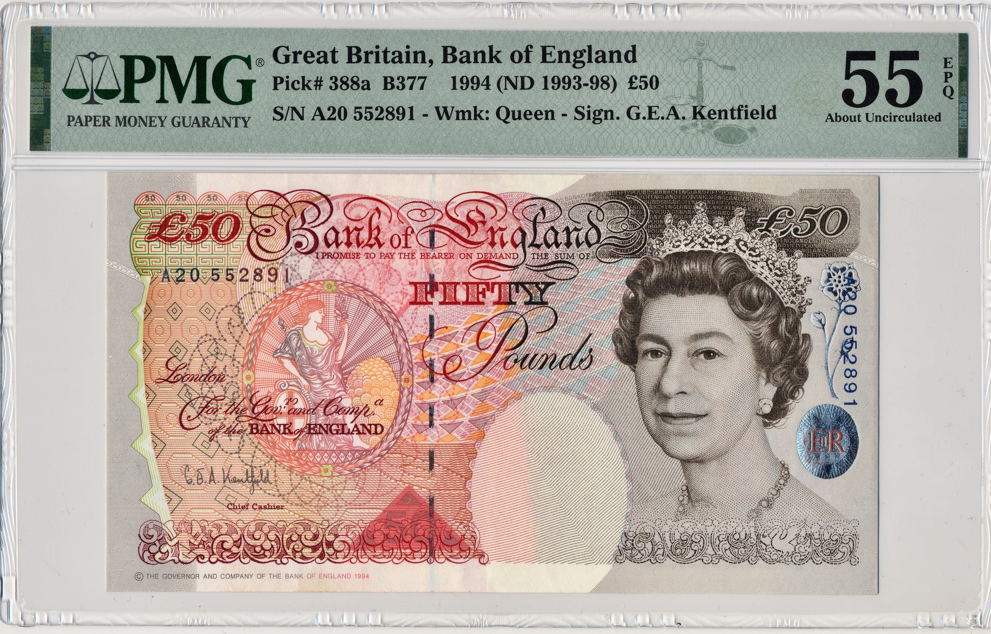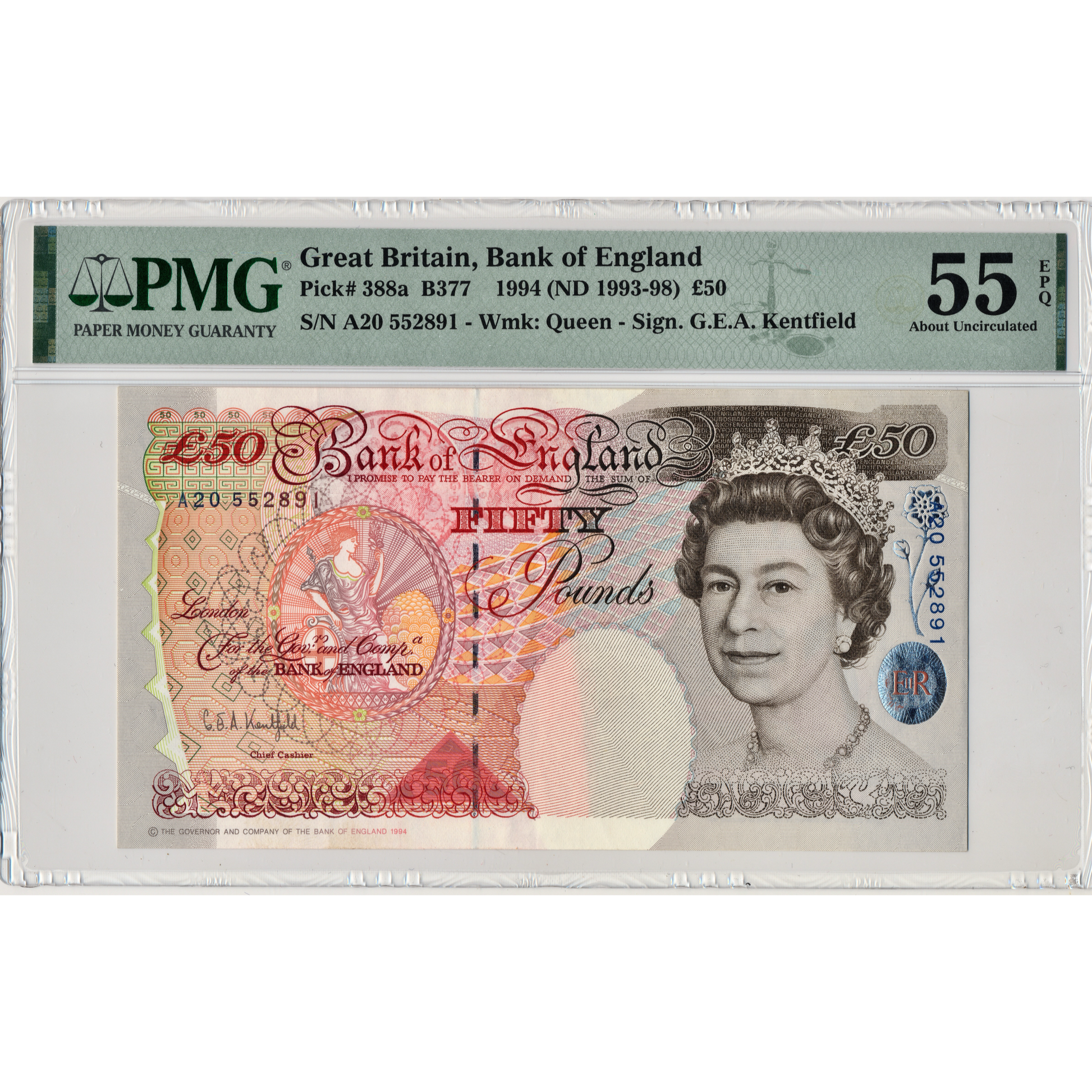 ENGLAND P.388a B377 1993-1998 First series A20 £50 AUNC 55 EPQ