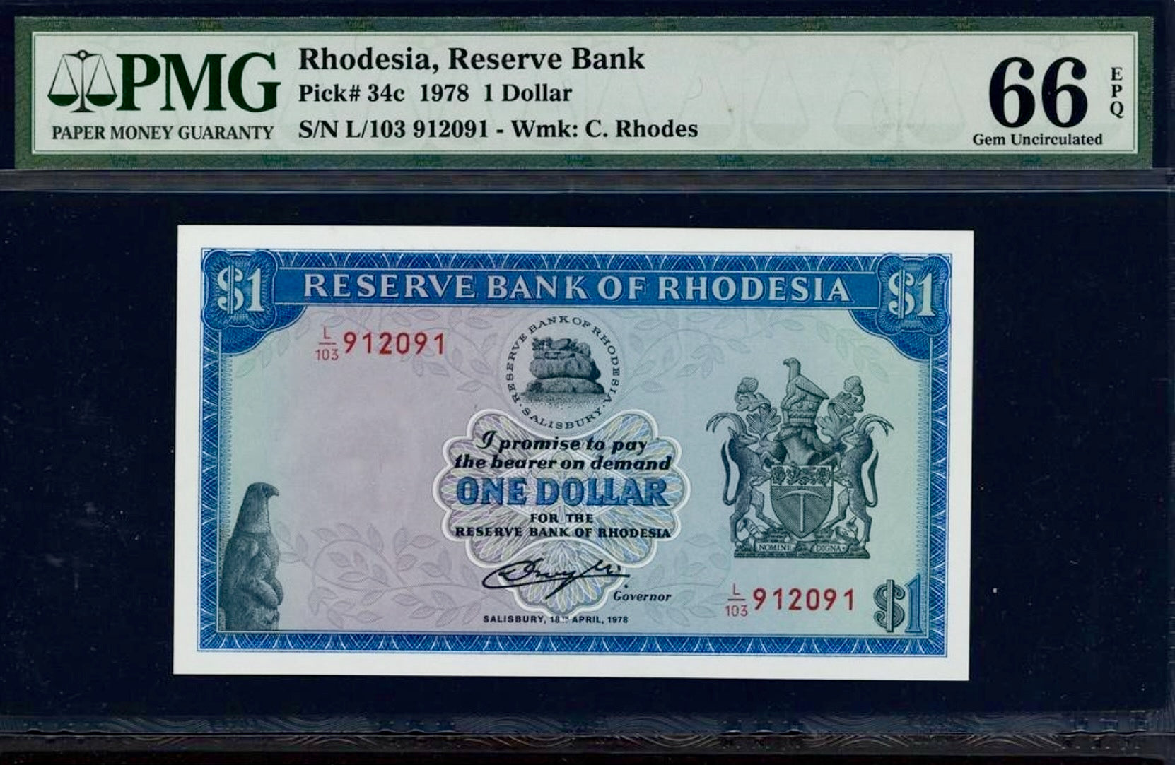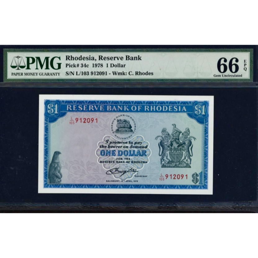 RHODESIA P.34c 1978 1 dollar GEM 66 UNC