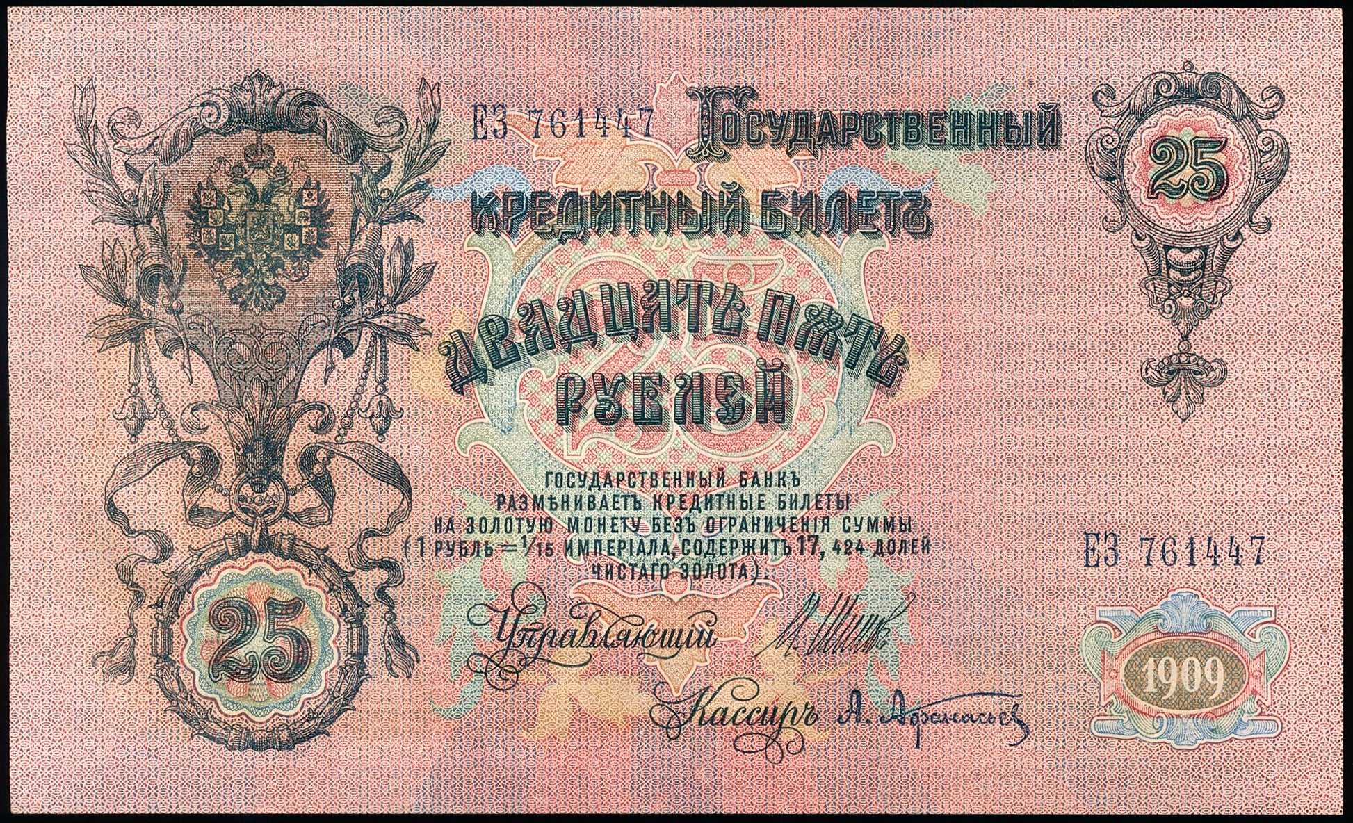 RUSSIA P.12b 1912-1917 25 Rubles AUNC