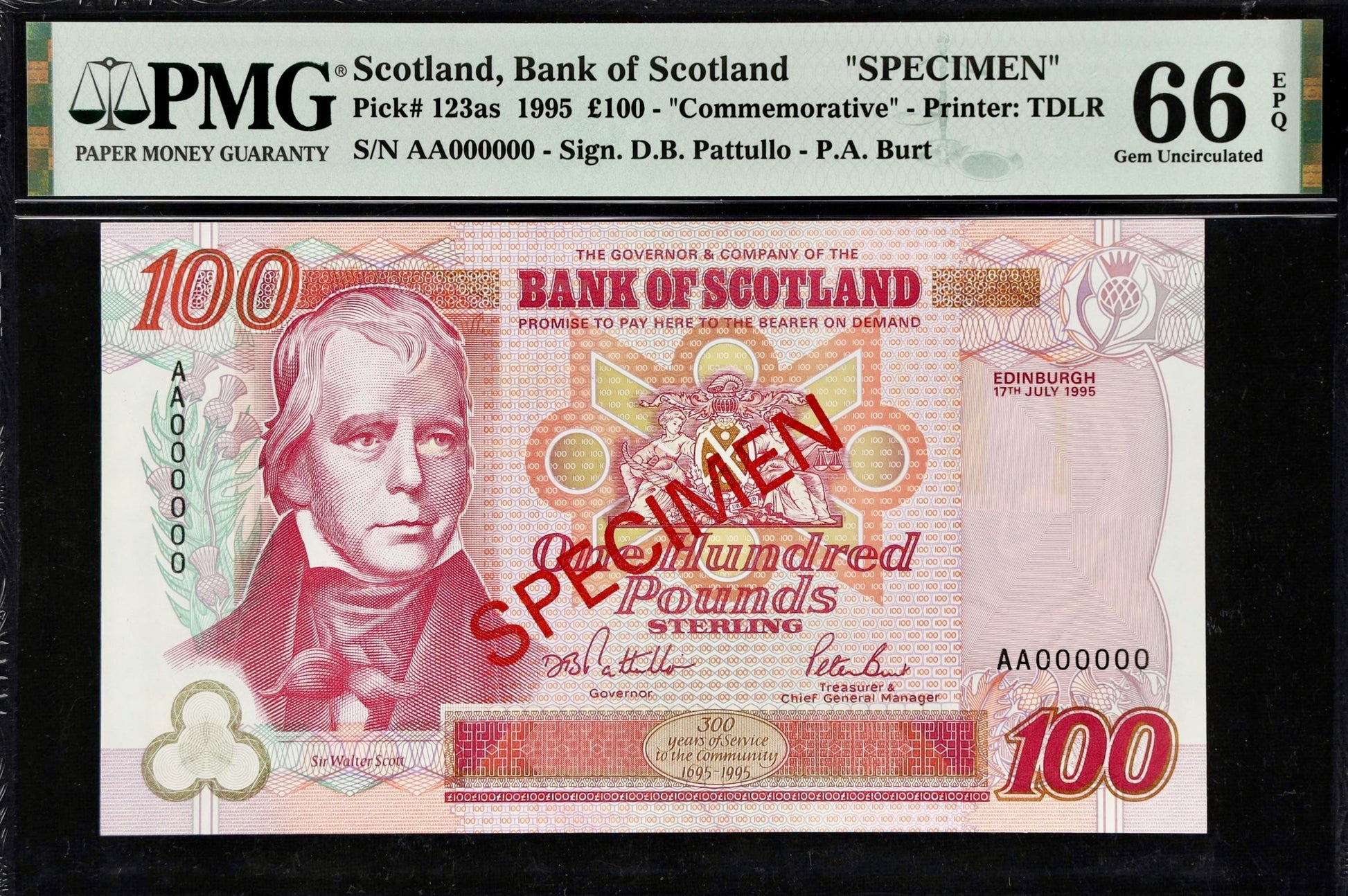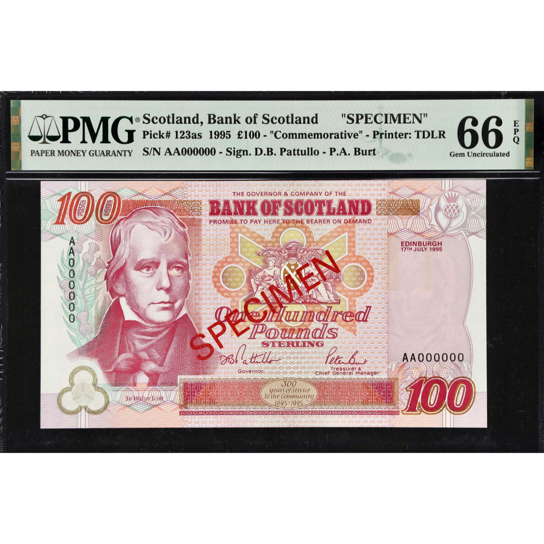 SCOTLAND P.123as SC176a 1995 Bank of Scotland £100 Specimen GEM UNC 66EPQ