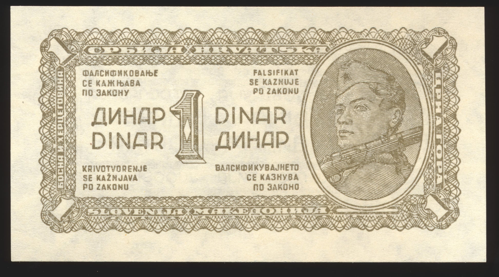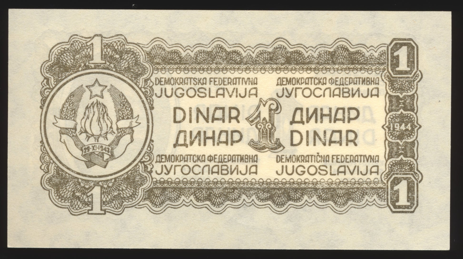 YUGOSLAVIA P.48 1944. 1 Dinar UNC