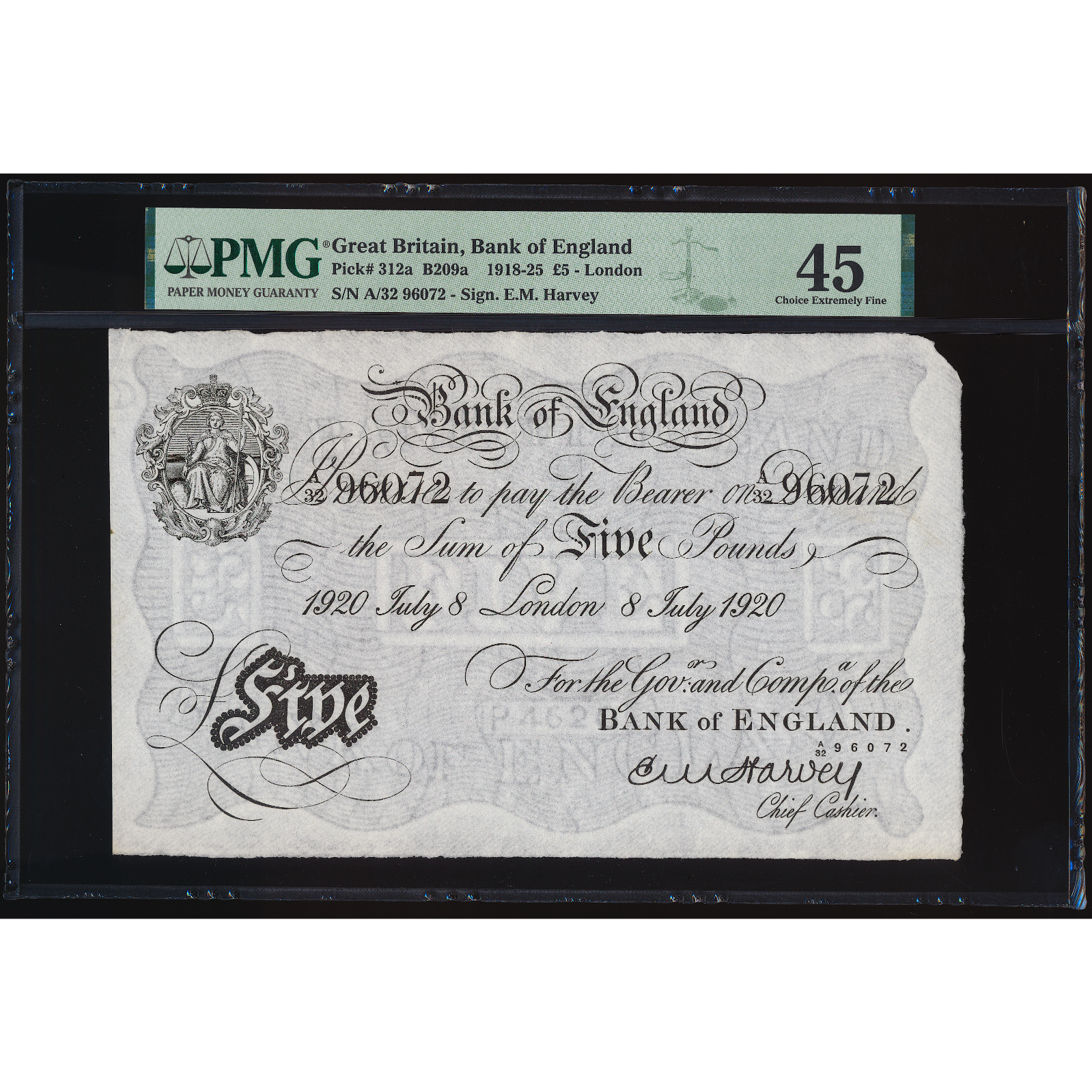 ENGLAND P.312a B209a 1920 Harvey £5 A32 Choice EF45