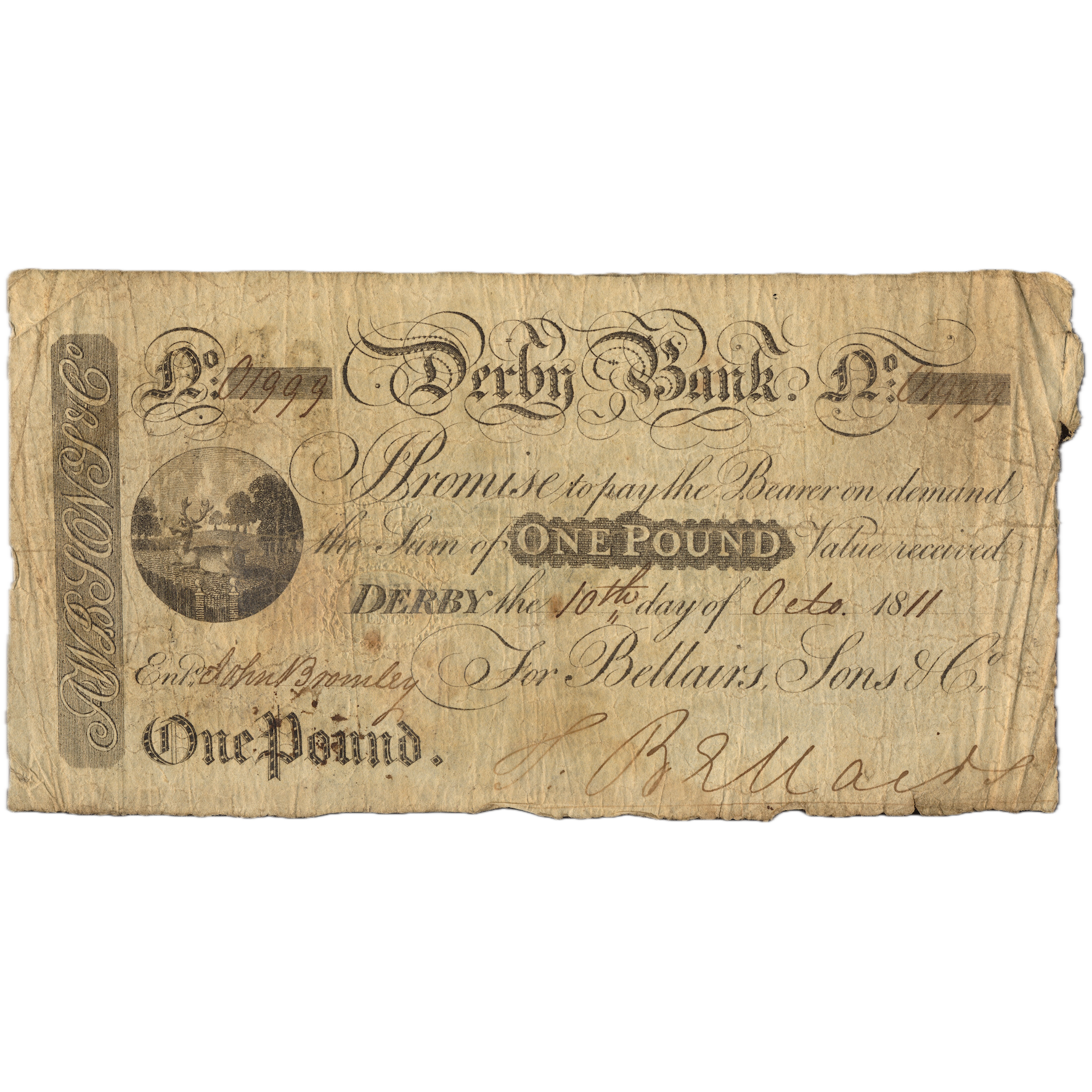 Derby Bank 1819 £1 banknote Outing 673d