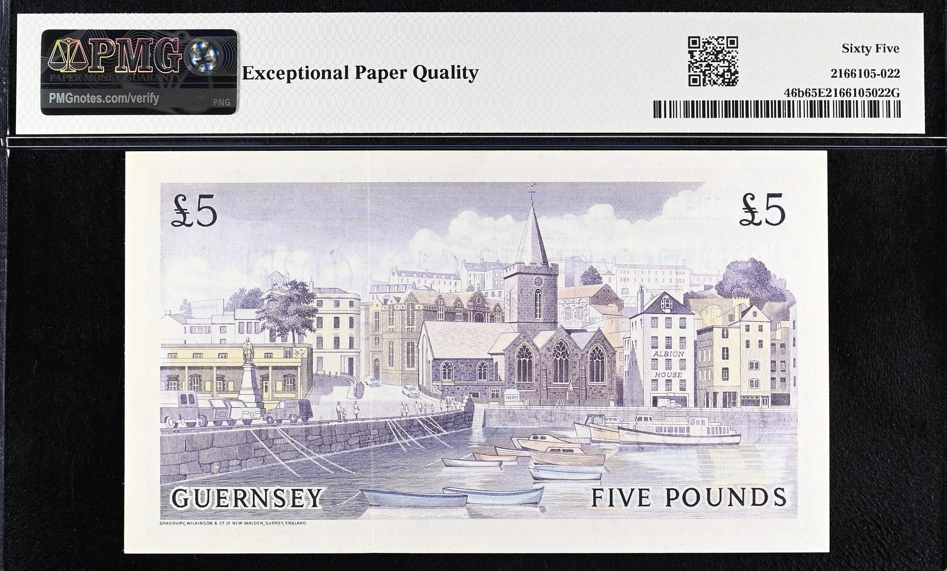 GUERNSEY P.46b GU42b 1969-1980 £5 Gem UNC 65 EPQ