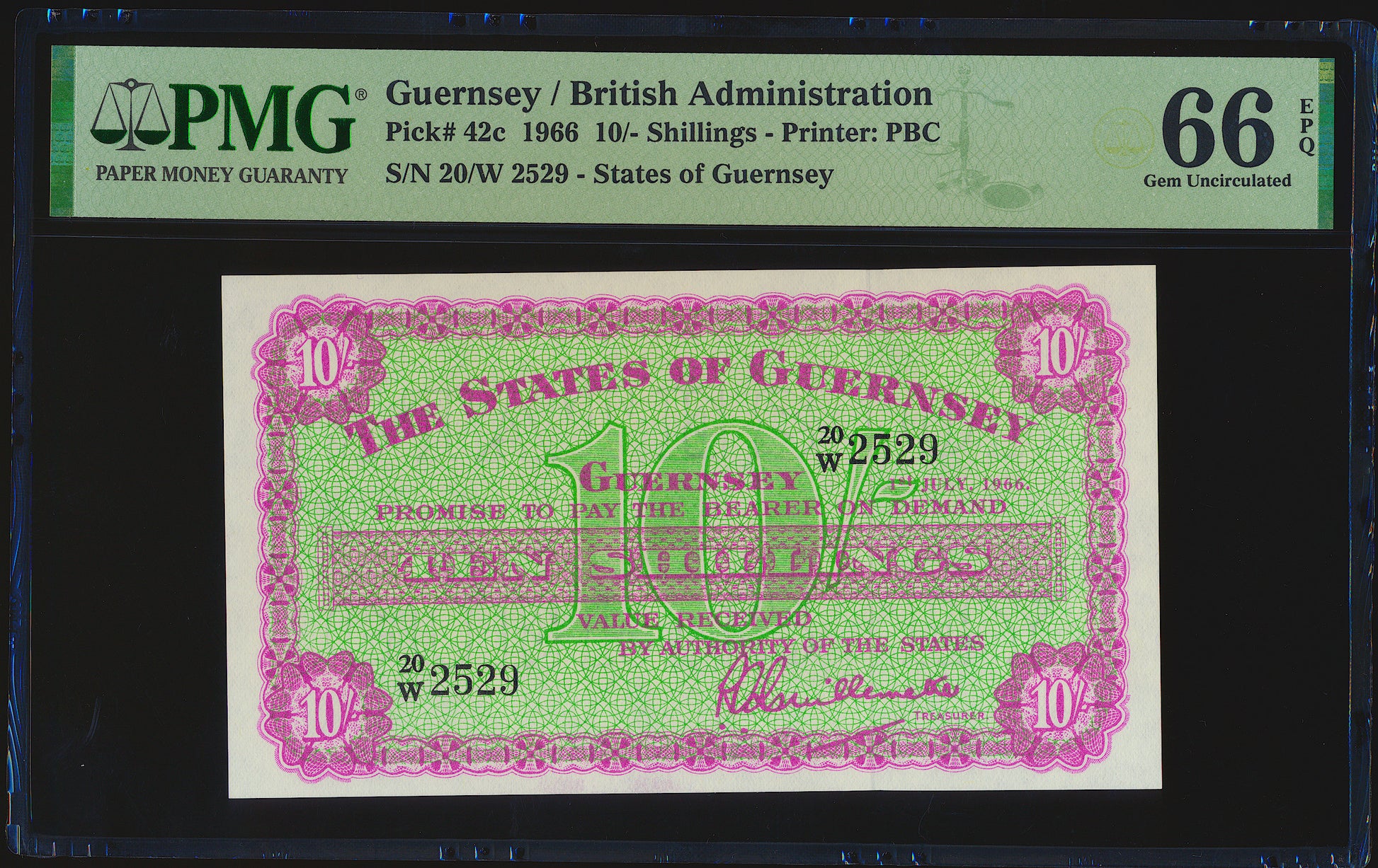 GUERNSEY P.42c GU32b 1966 10s GEM UNC 66 EPQ