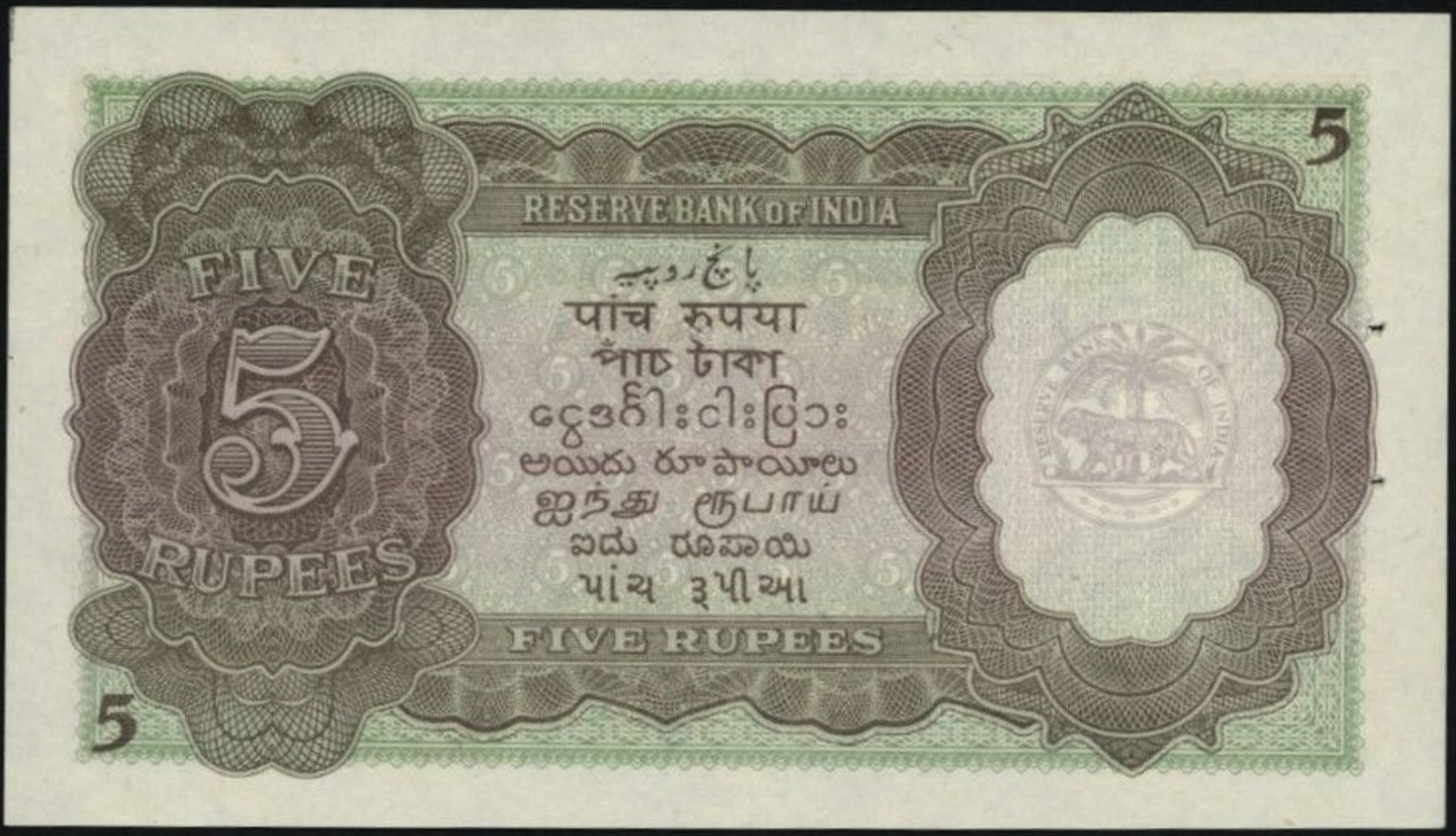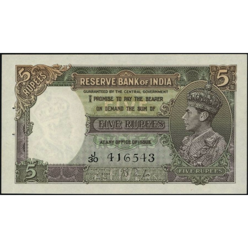 INDIA P.18a 1937 5 Rupees J/79 UNC