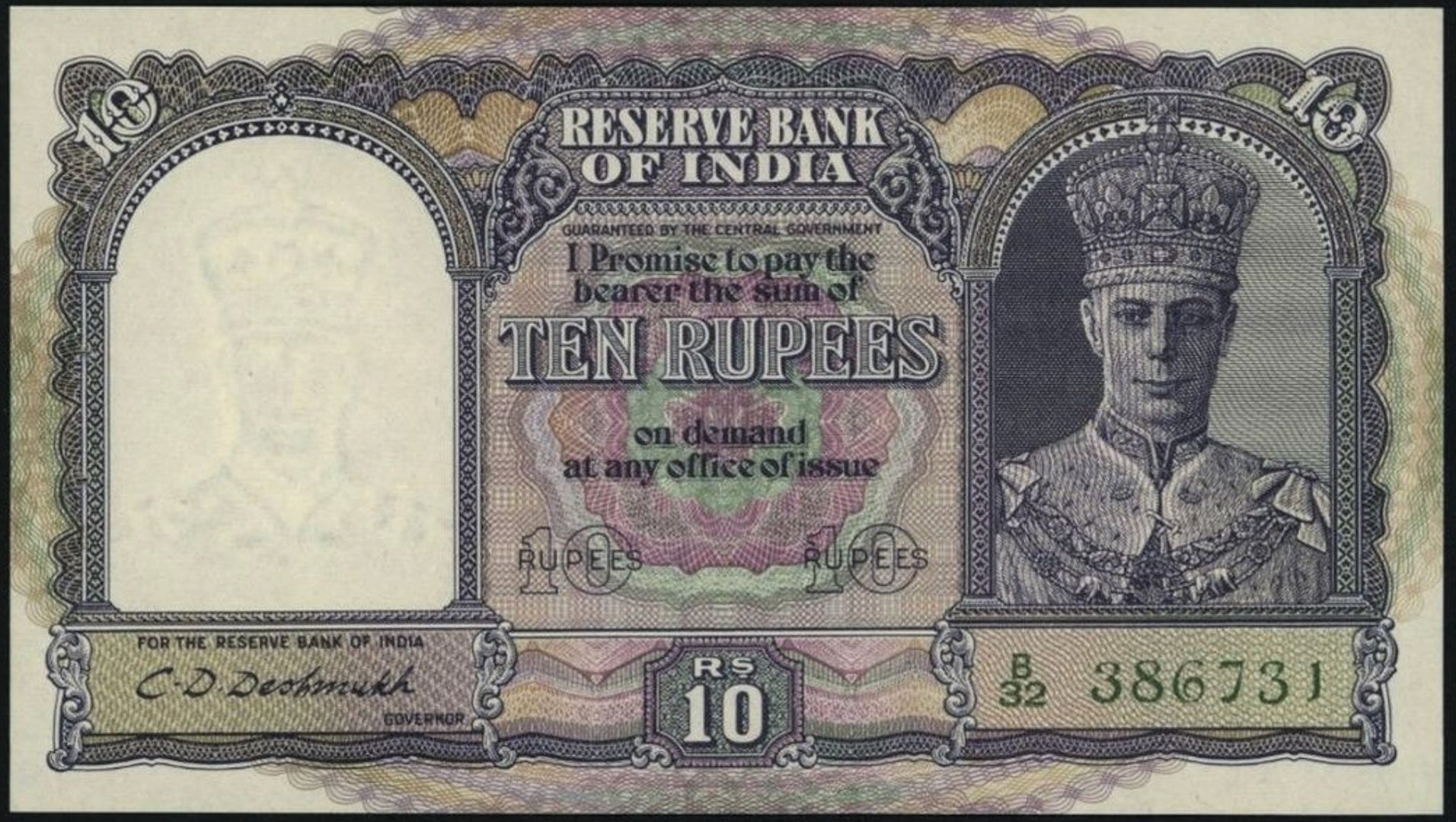 INDIA P.24 1938 - 1944 10 Rupees UNC