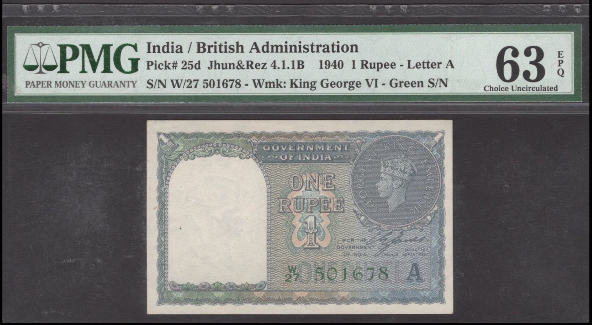 INDIA P.25d 1940 1 Rupee Choice UNC 63 EPQ