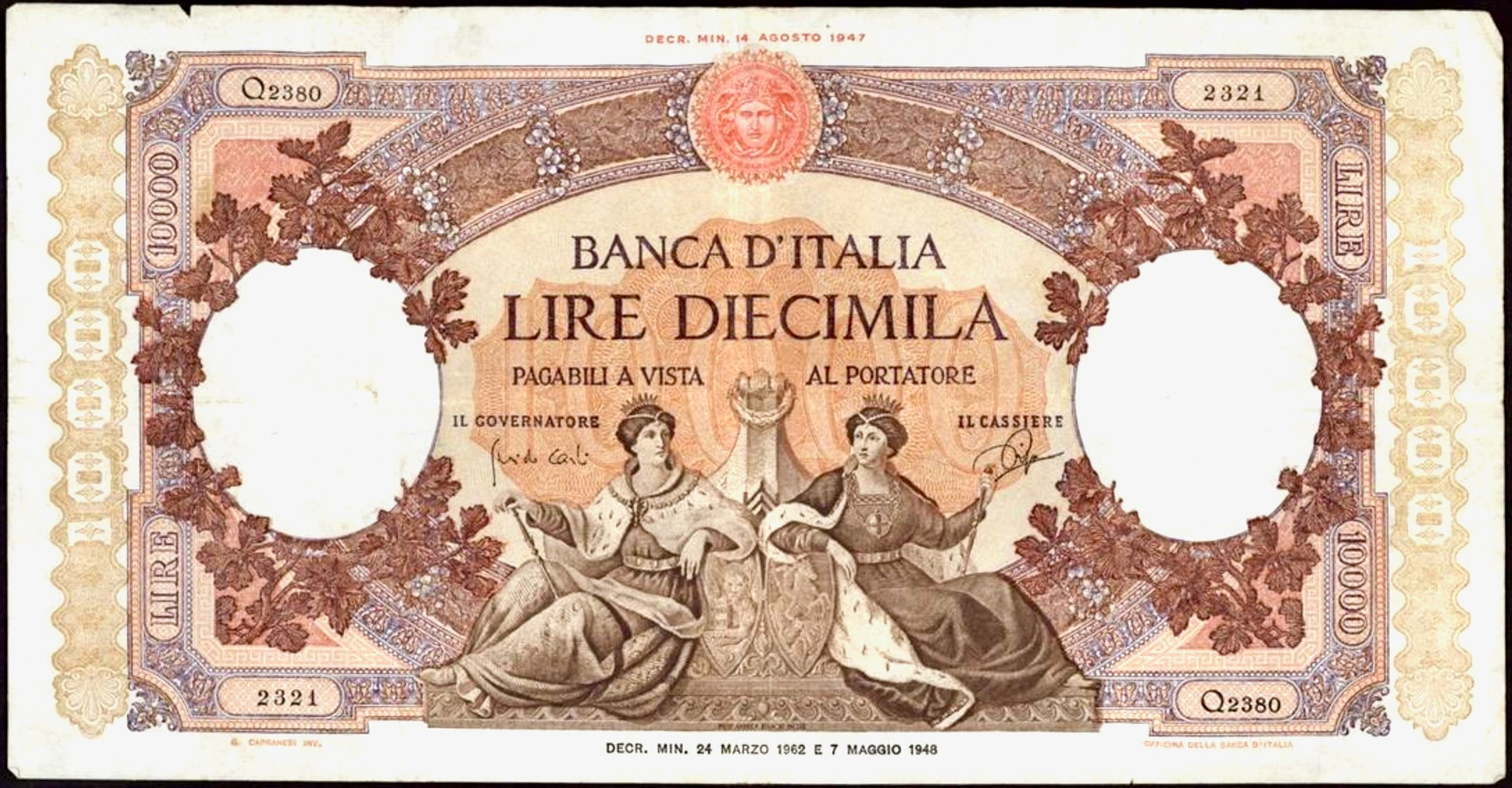 ITALY P.89d 1962 10,000 Lire AVF