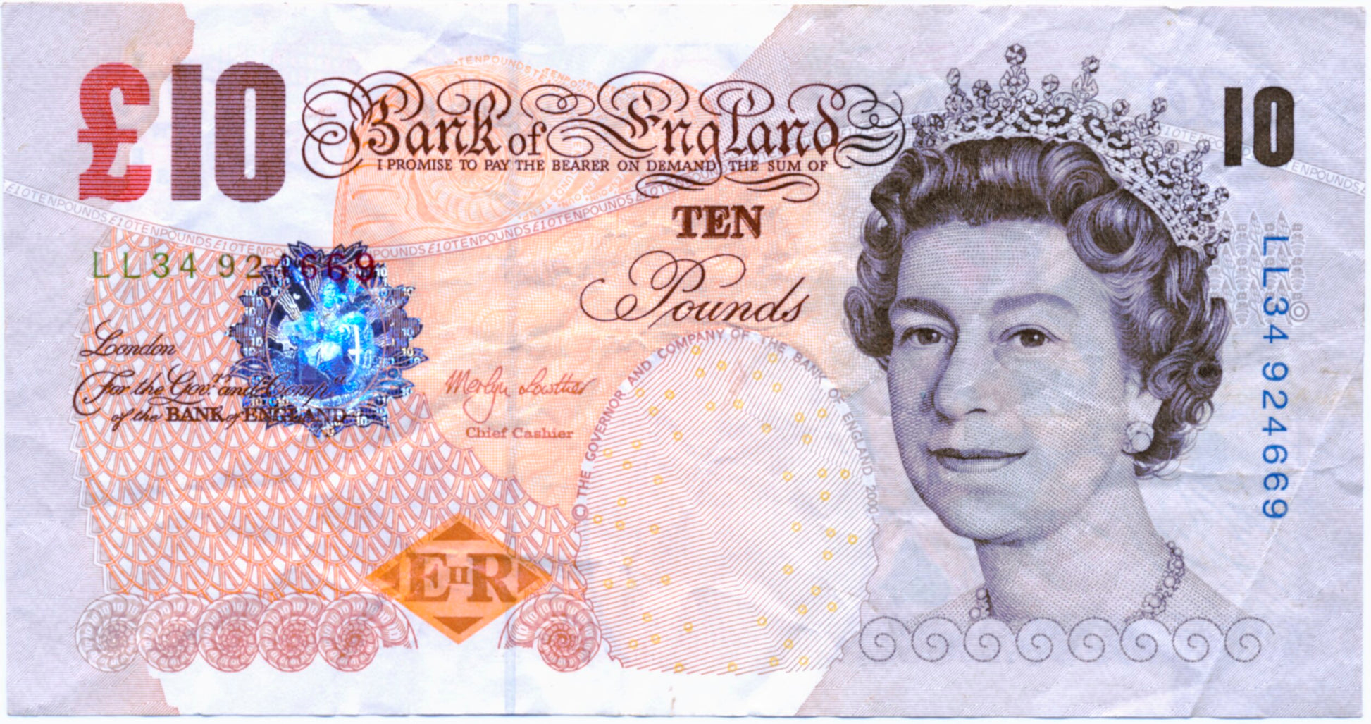 ENGLAND P.389a B389 2000 Lowther Replacement £10 VF LL34