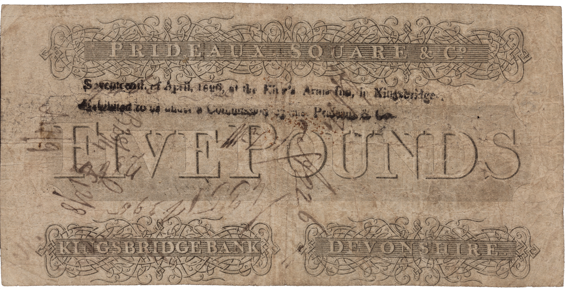 Kingsbridge Bank 1820 £5 banknote Outing 1068b