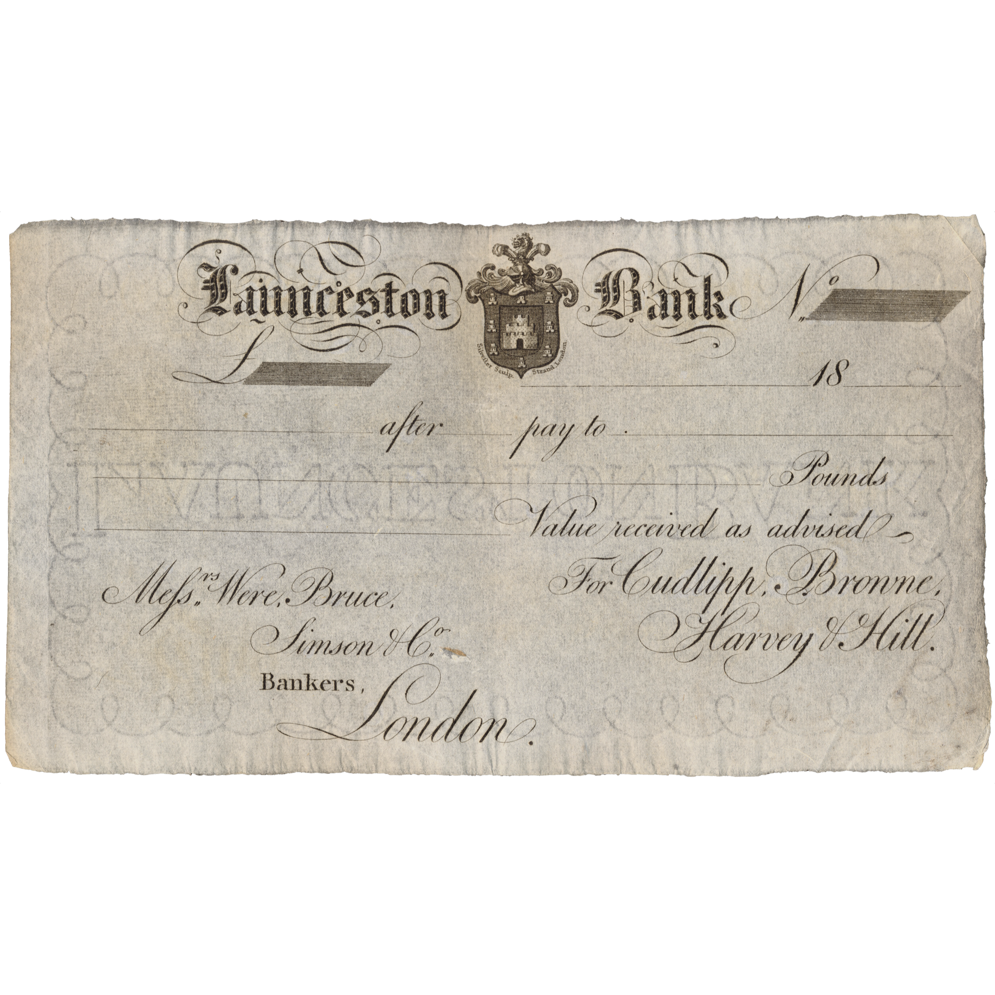 Launceston Bank 18-- (1810 - 1811) unissued bank drafts or payment orders Outing 1111
