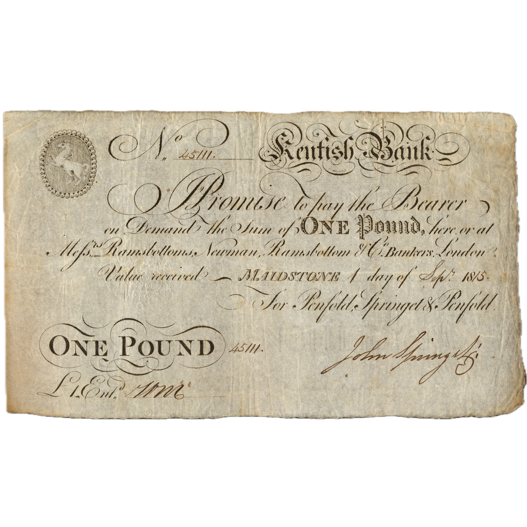 Kentish Bank Maidstone 1815 £1 banknote Outing 1327a