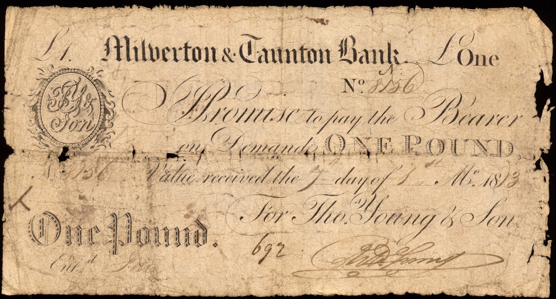 Milverton & Taunton Bank 1813 £1 banknote Outing 1436c