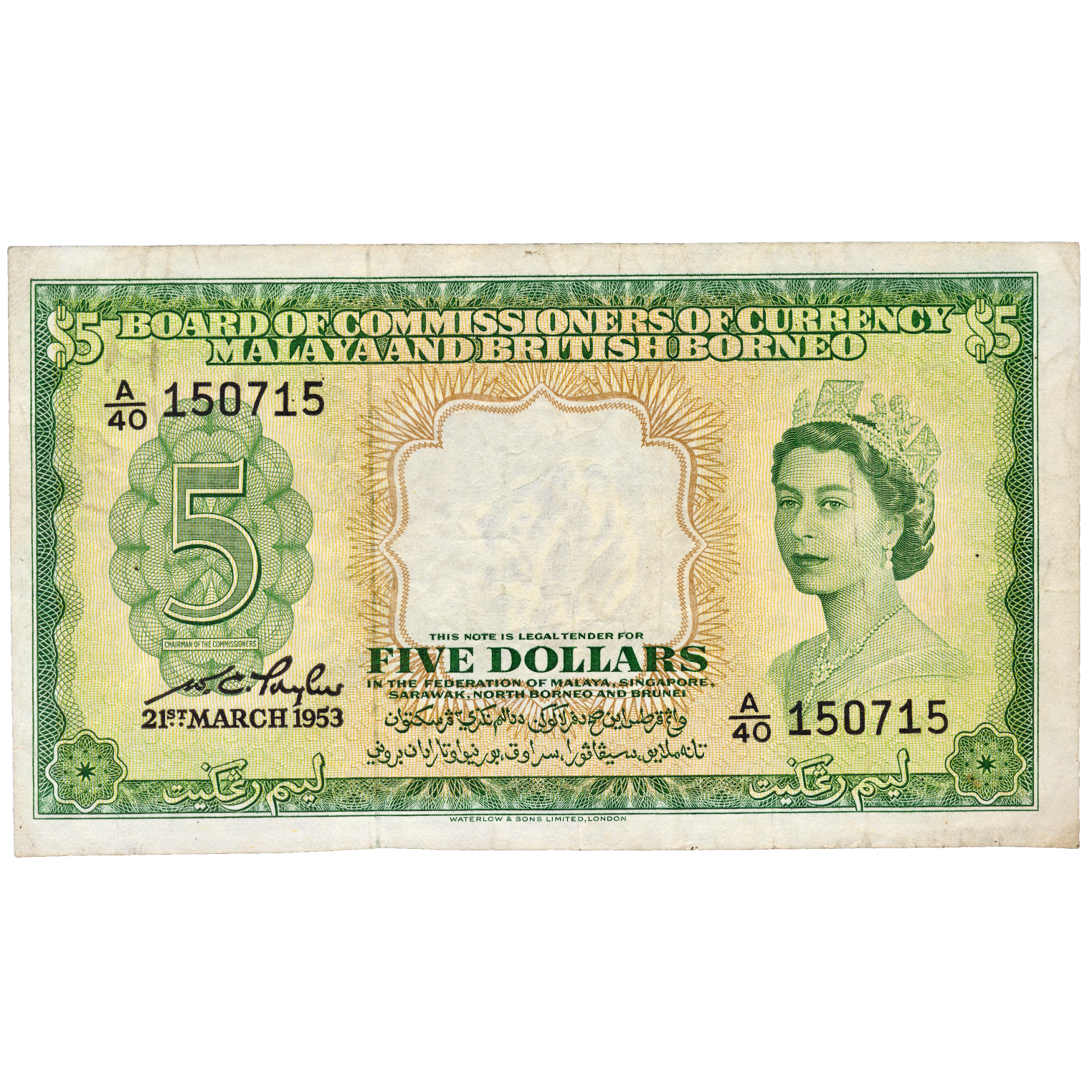 MALAYA and BRITISH BORNEO P.2a 1953 $5 VF