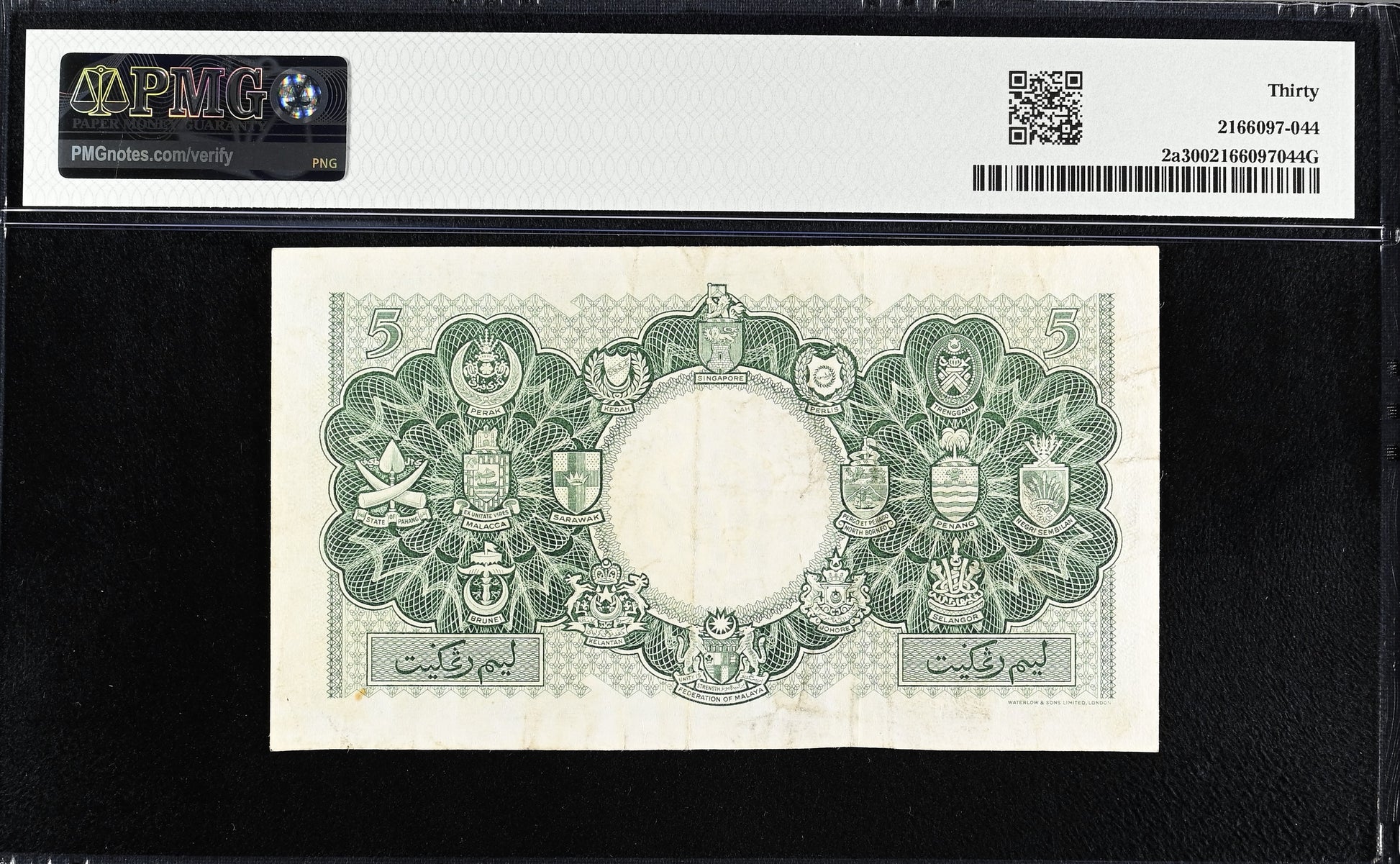 MALAYA and BRITISH BORNEO P.2a 1953 $5 VF 30