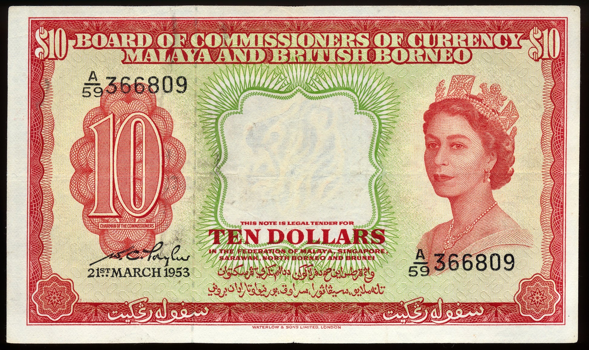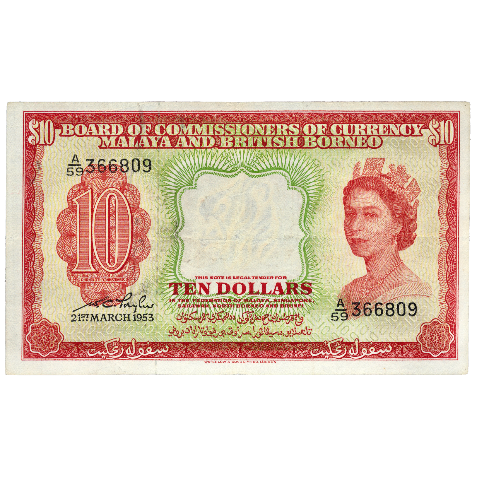 MALAYA and BRITISH BORNEO P.3a 1953 $10 GVF