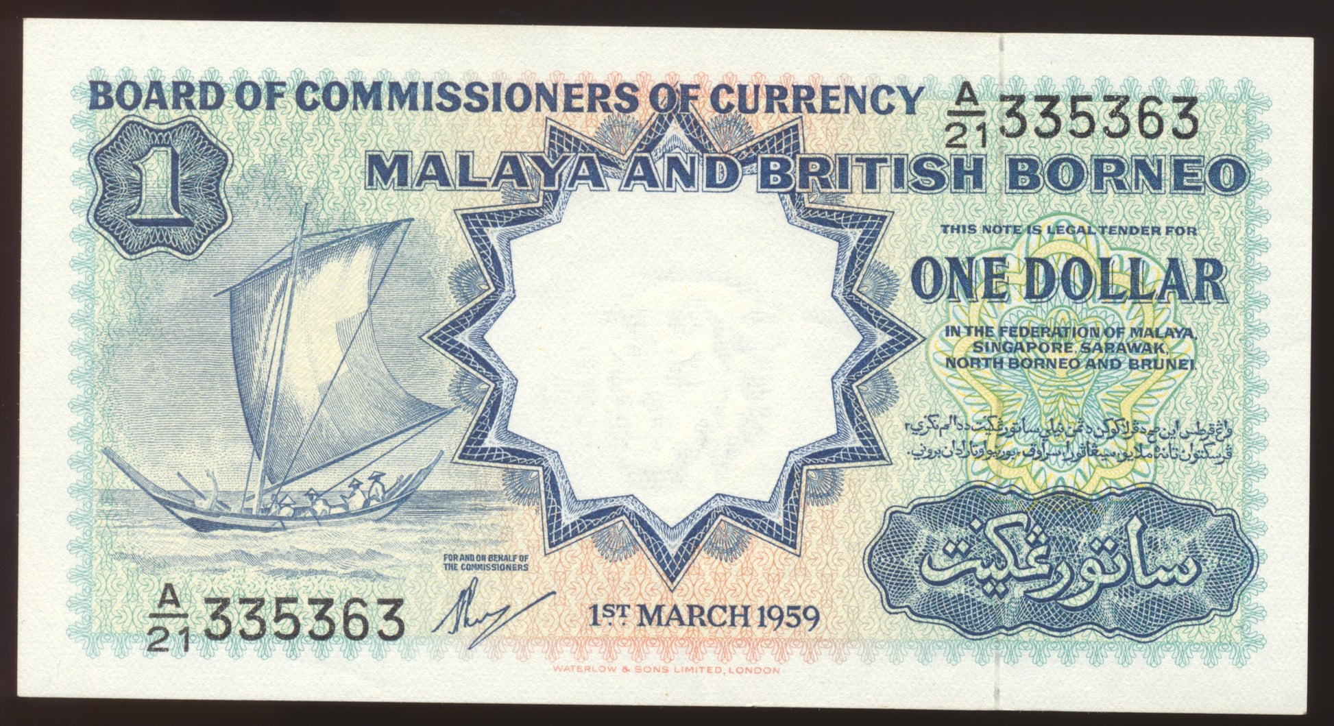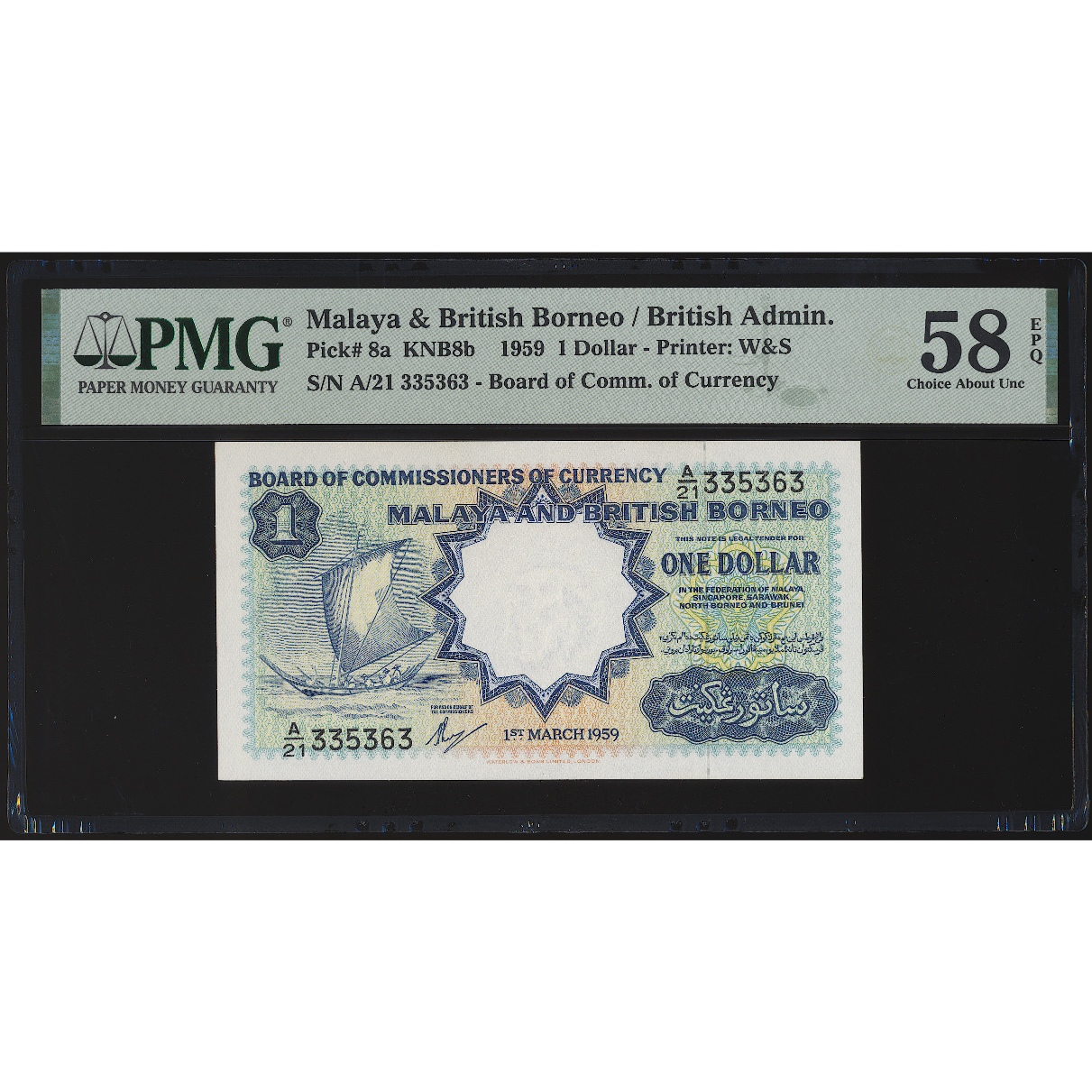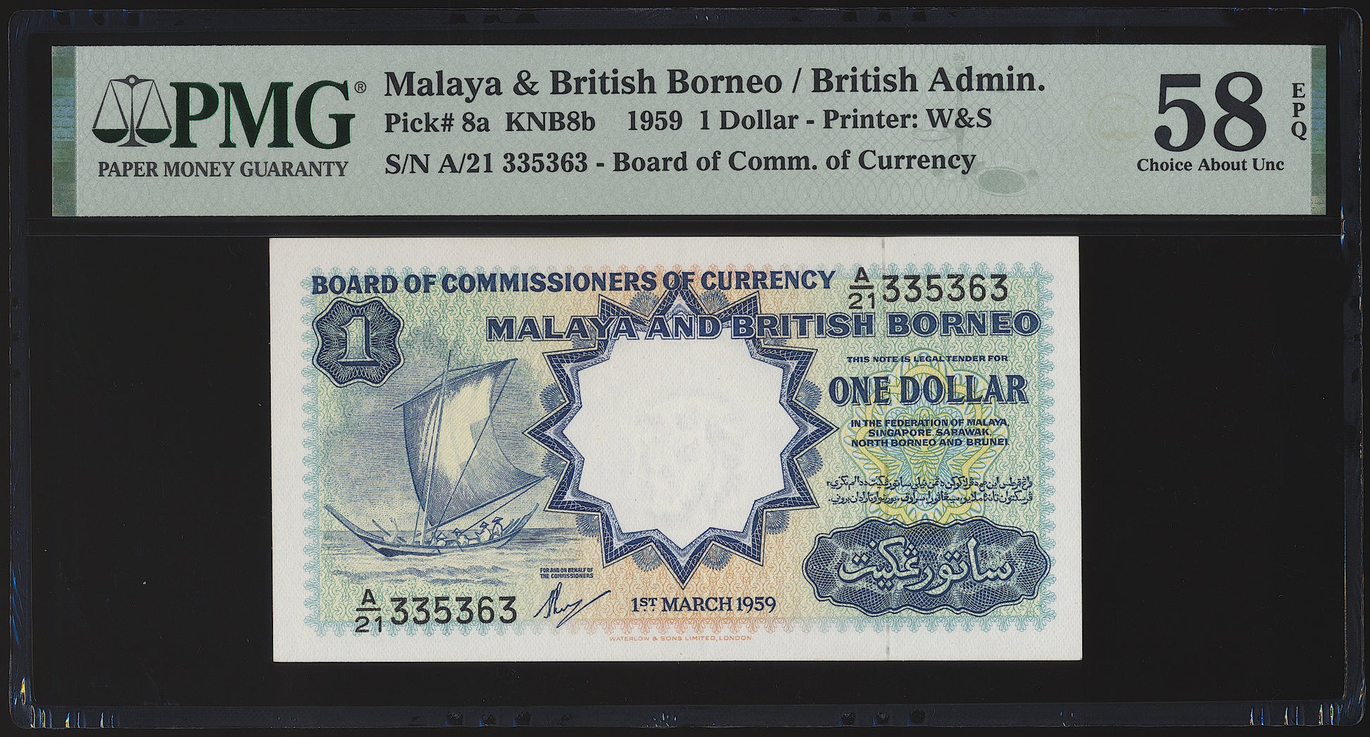 MALAYA and BRITISH BORNEO P.8 1959 $1 CHOICE AUNC 58 EPQ