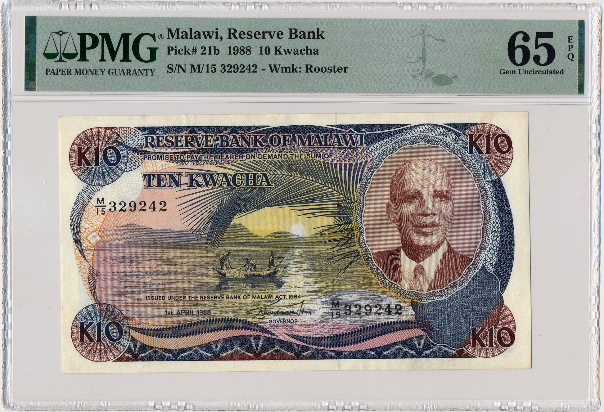 MALAWI P.21b 1988 10 Kwacha Gem UNC 65 EPQ