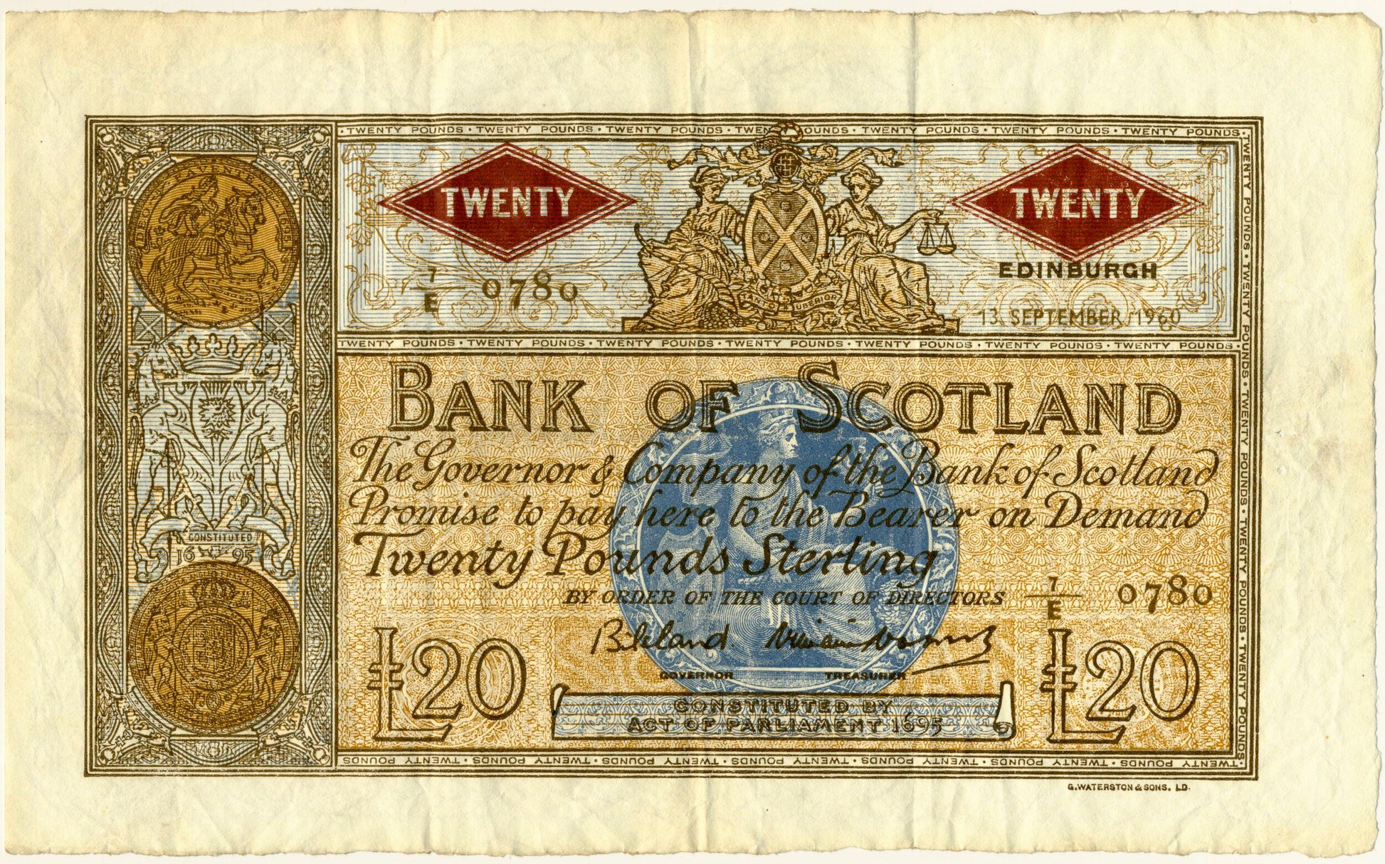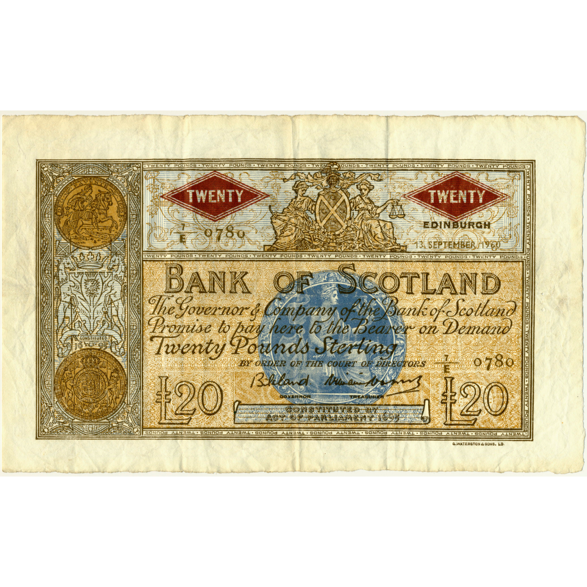 SCOTLAND P.94f SC143b 1960 Bank of Scotland £20 GVF 7/E