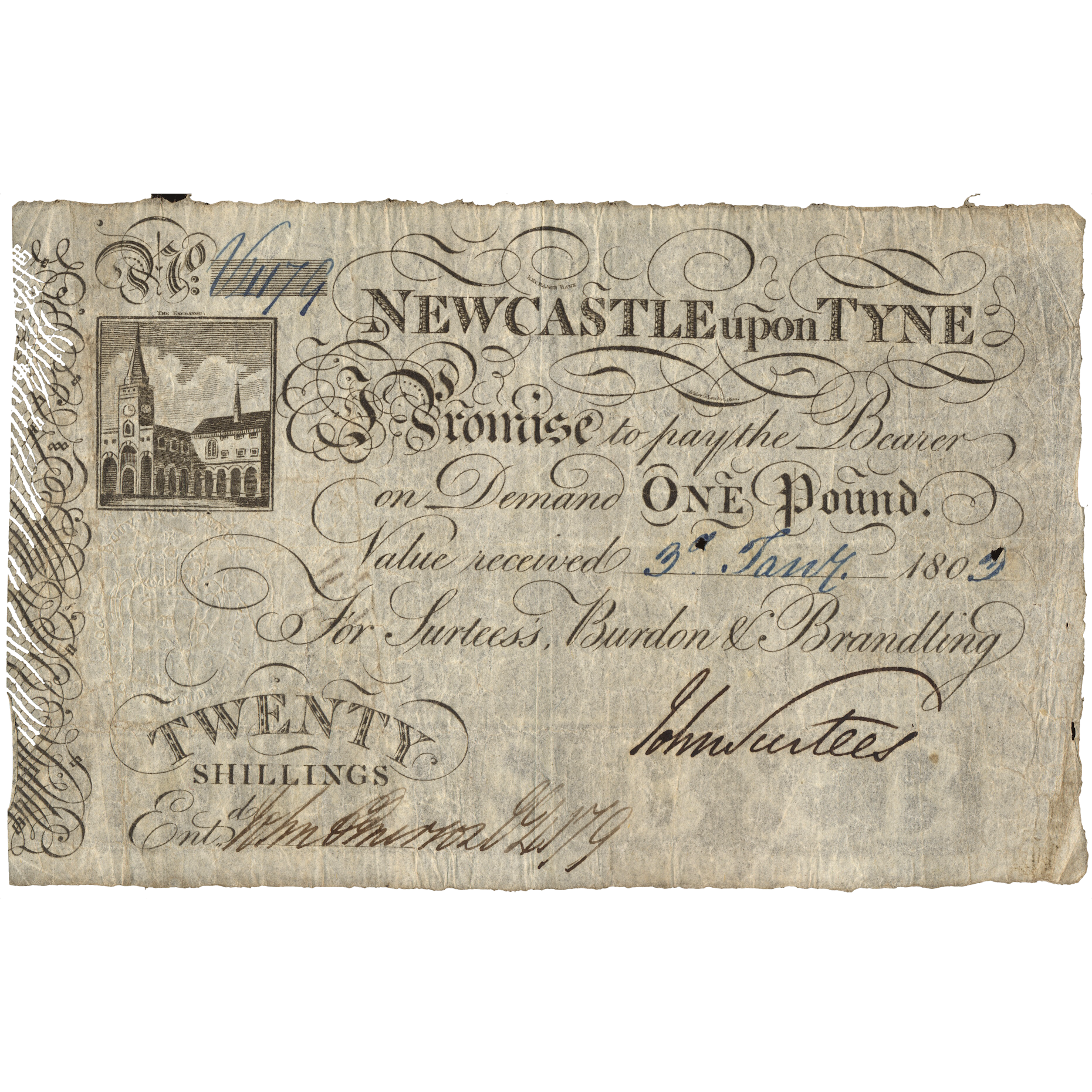 Newcastle Exchange Bank 1803 20 Shillings banknote Outing 1502g