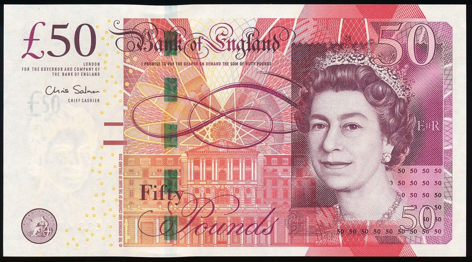 ENGLAND P.393a B410 2011-2015 Salmon £50 UNC AC38