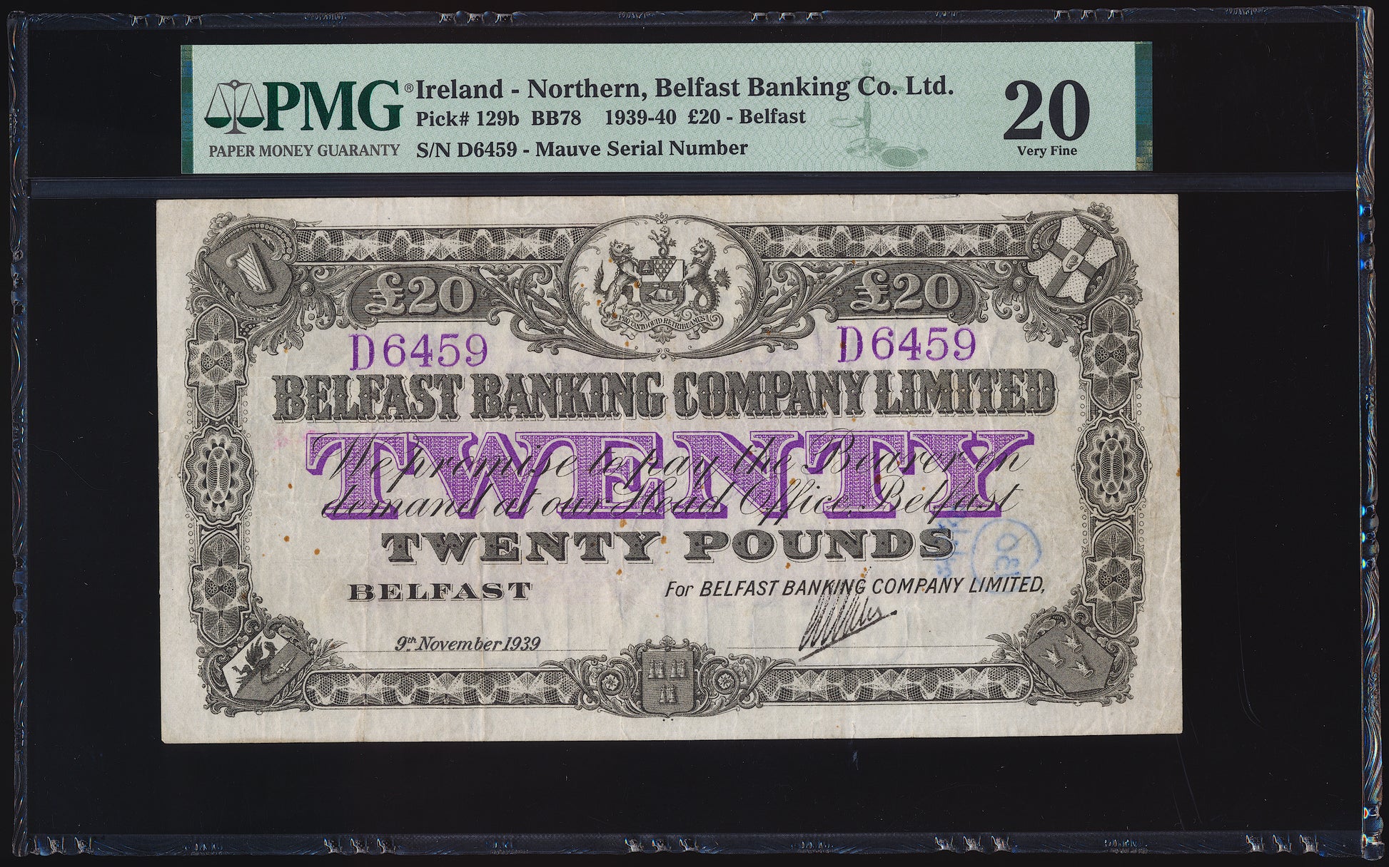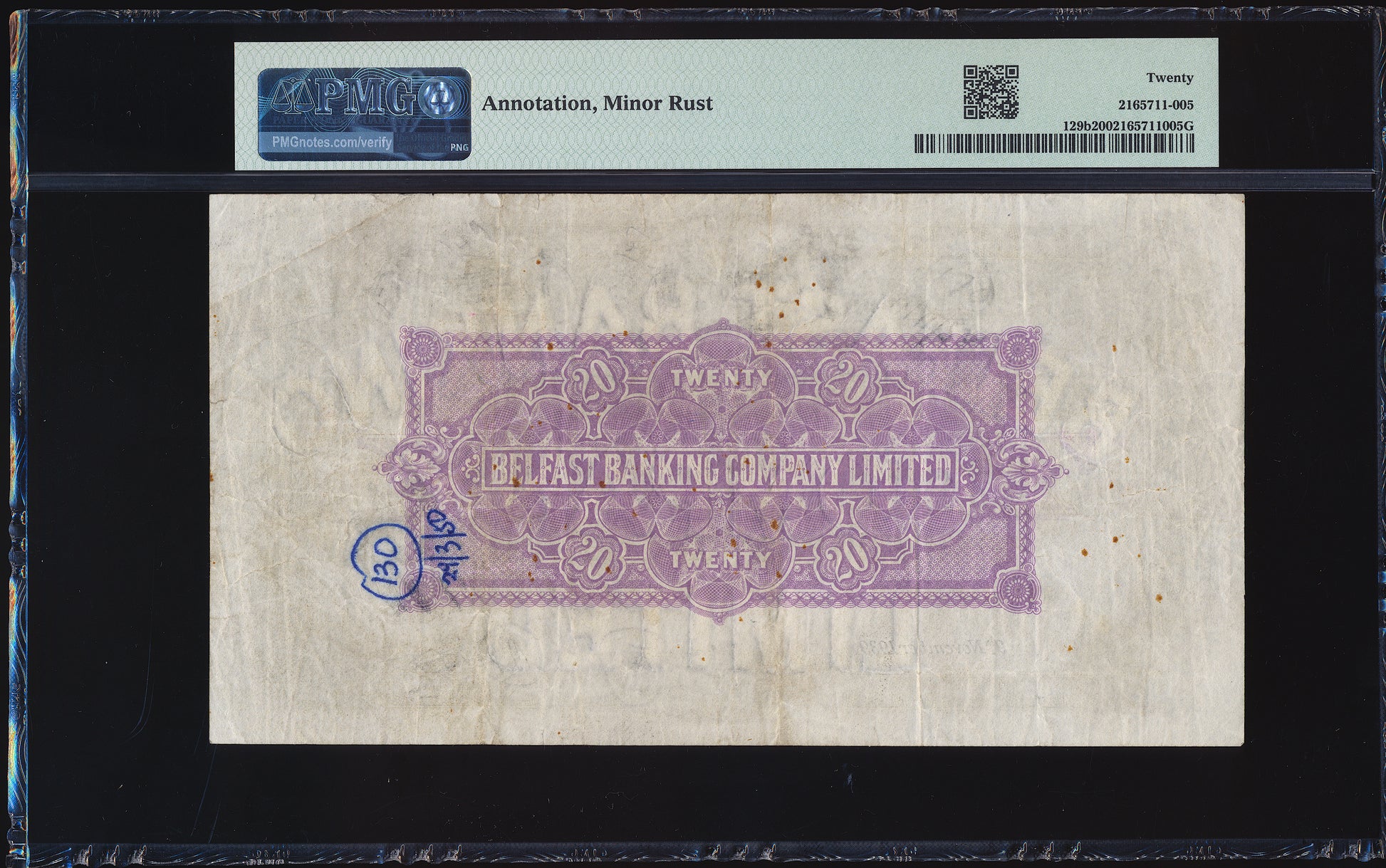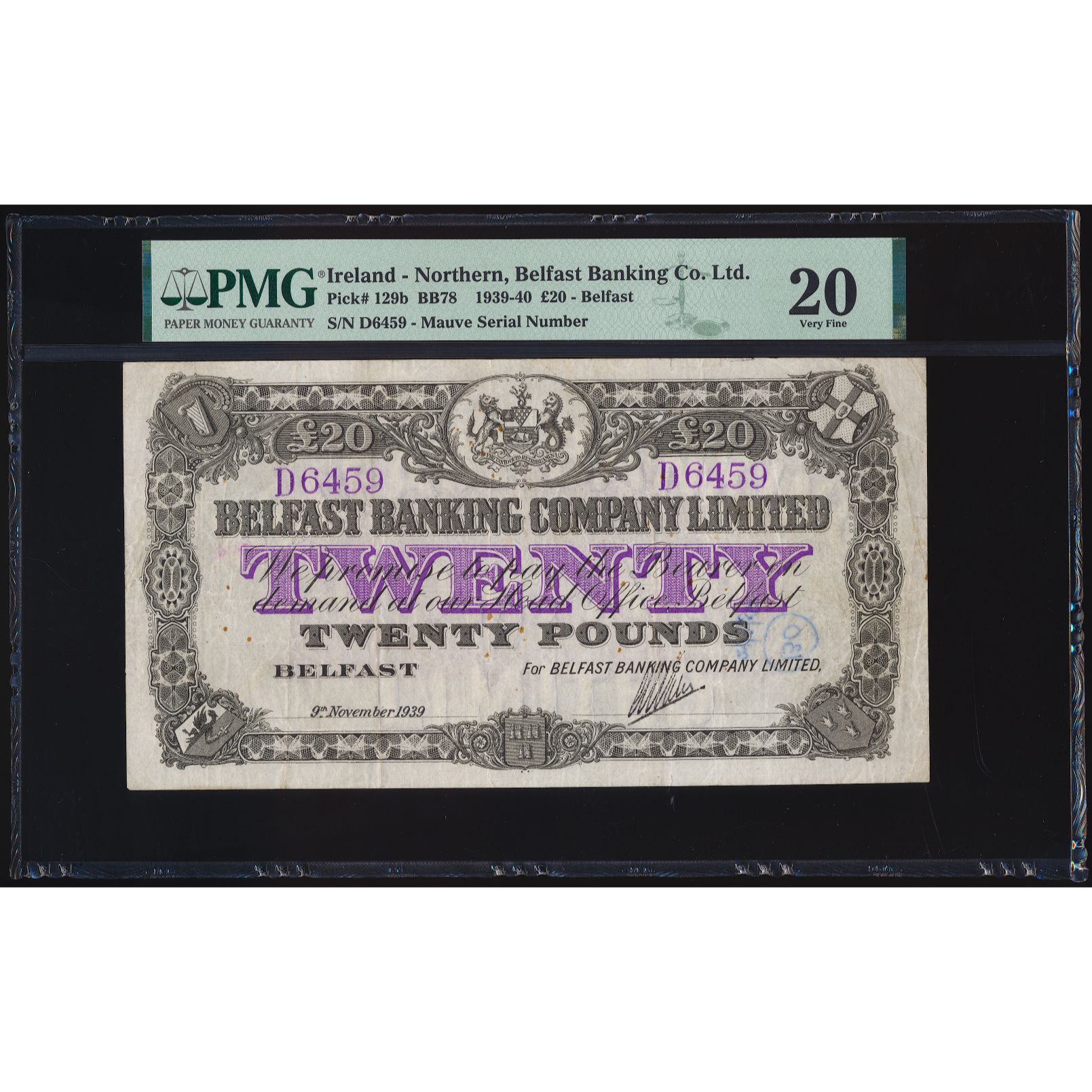 NORTHERN IRELAND P.129b NI304a 1939 Belfast Banking Co Ltd £20 VF20