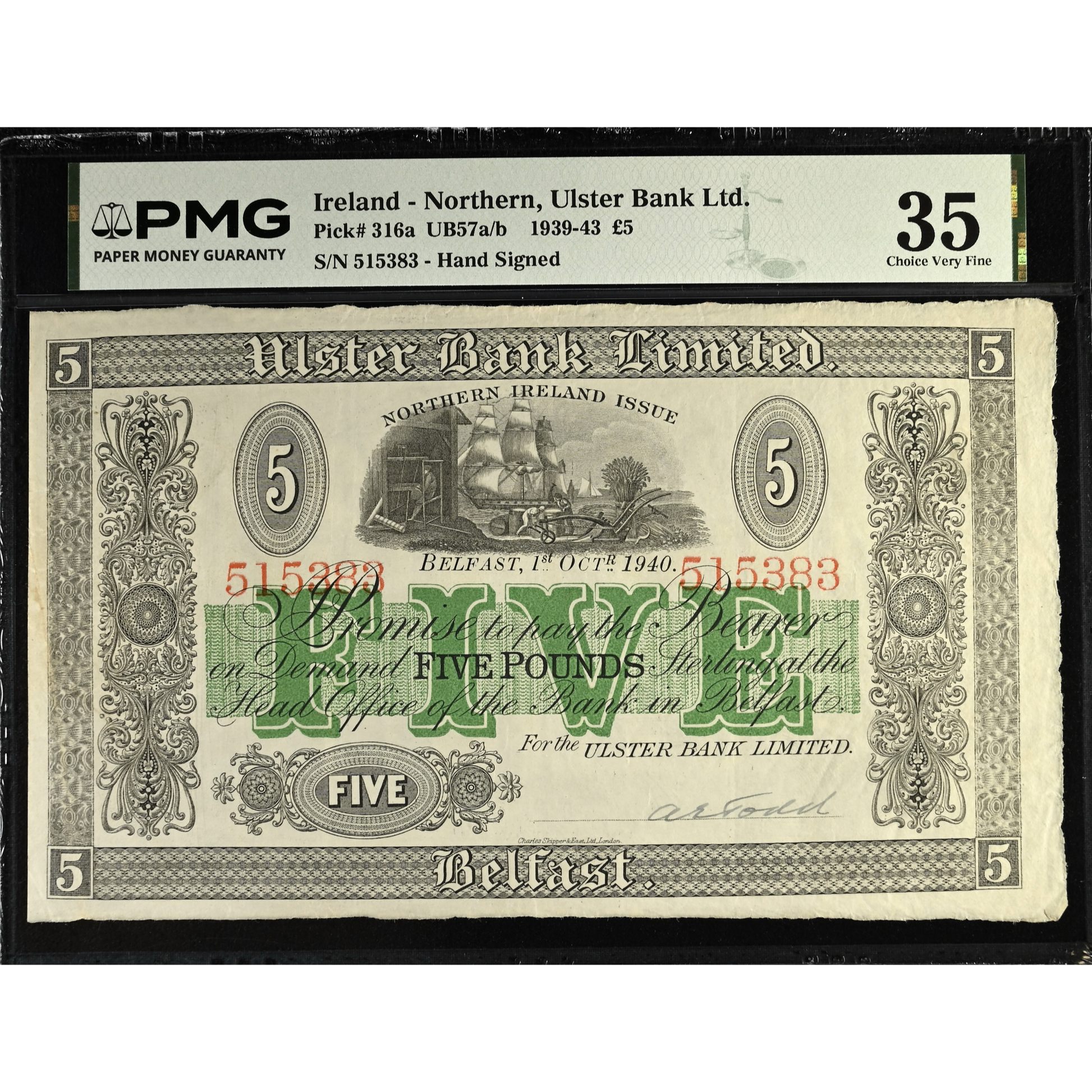 NORTHERN IRELAND P.316a NI813a 1940 Ulster Bank £5 Choice VF 35