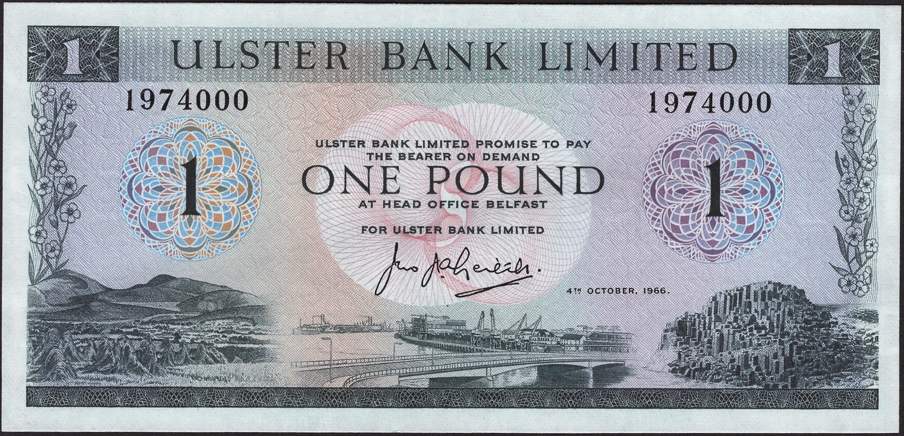 NORTHERN IRELAND P.321a NI805 1966 Ulster Bank £1 AUNC