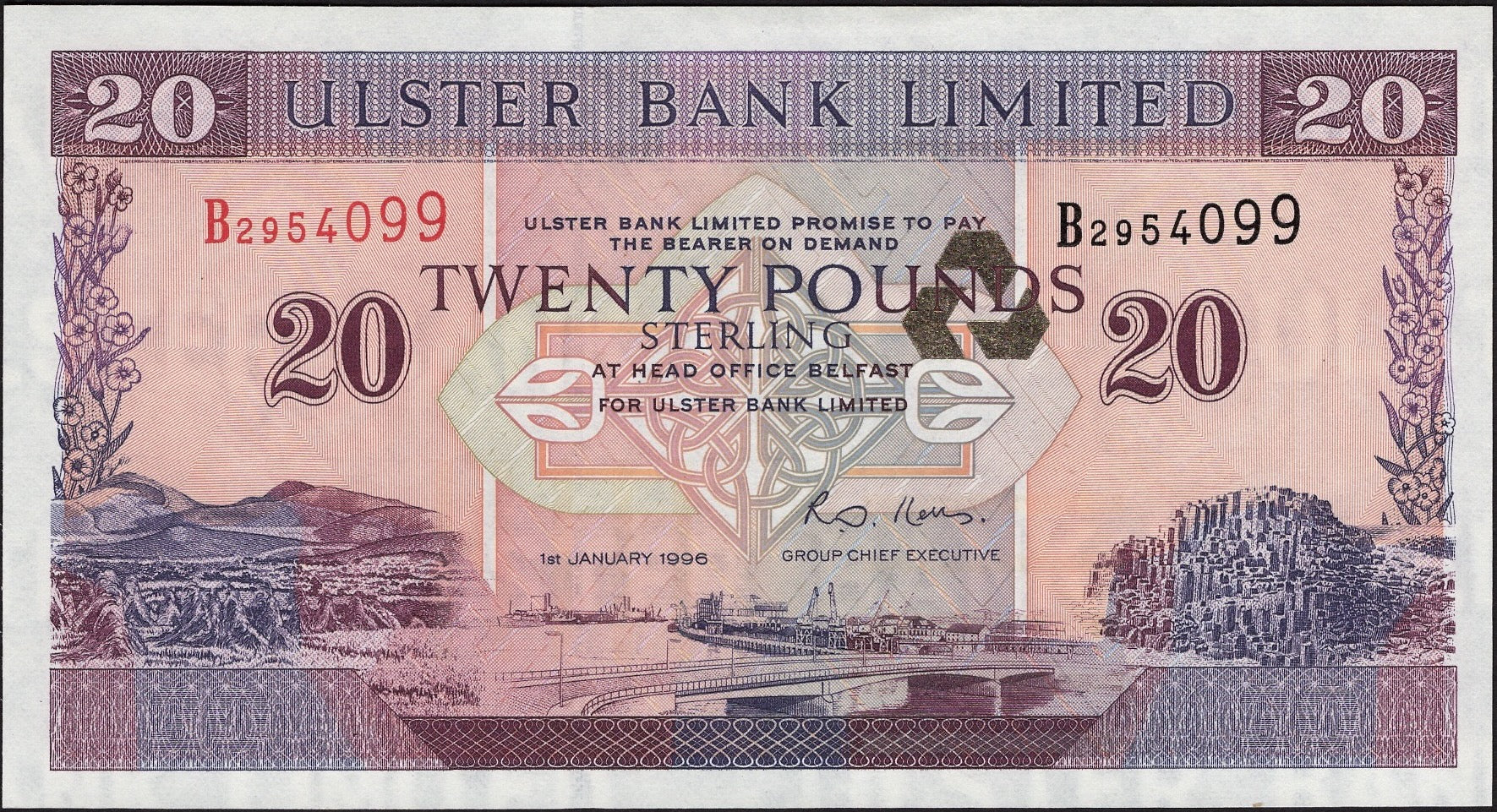 NORTHERN IRELAND P.337a NI835a 1996 Ulster Bank £20 UNC