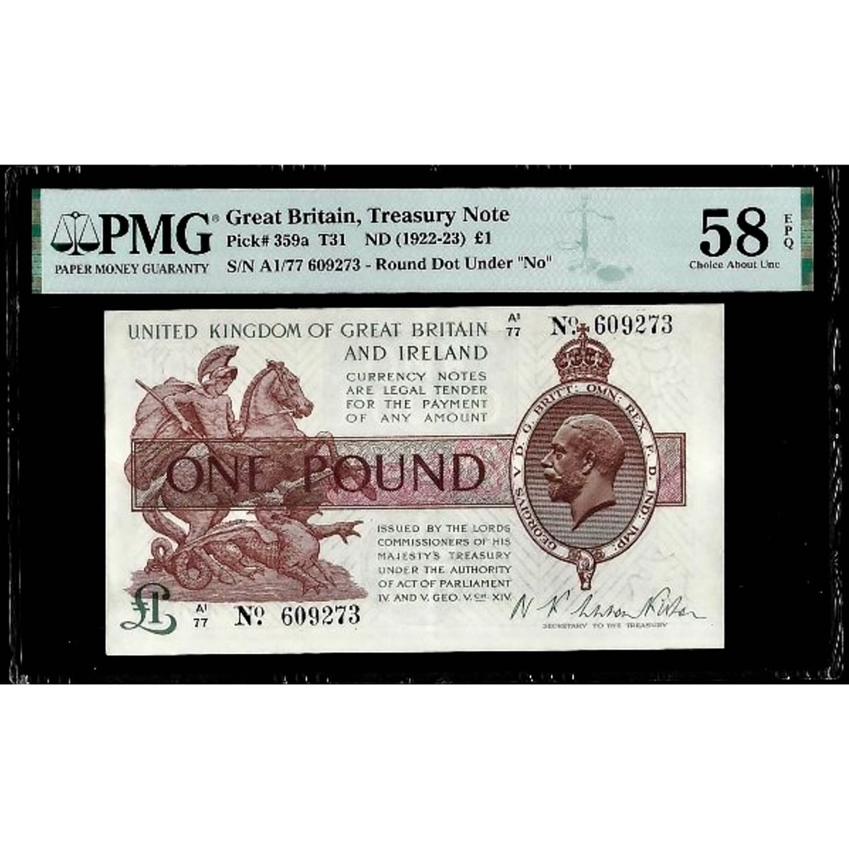 P.359a T31.1 1923 HM Treasury Fisher £1 Choice AUNC58 EPQ
