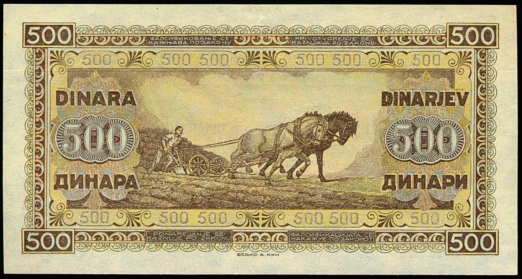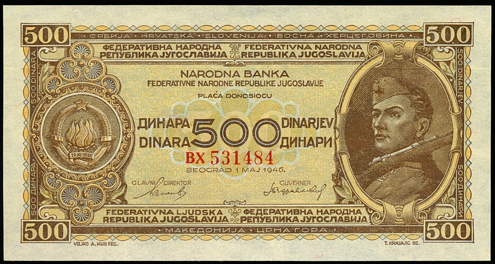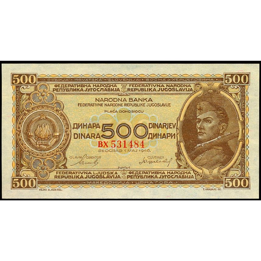 YUGOSLAVIA P.66a 1946 500 Dinar UNC