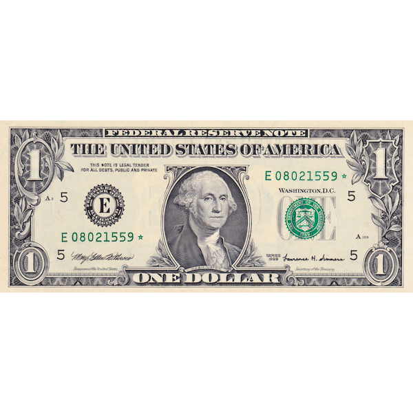 USA P.504* 1999 Federal Reserve Replacement note $1 UNC