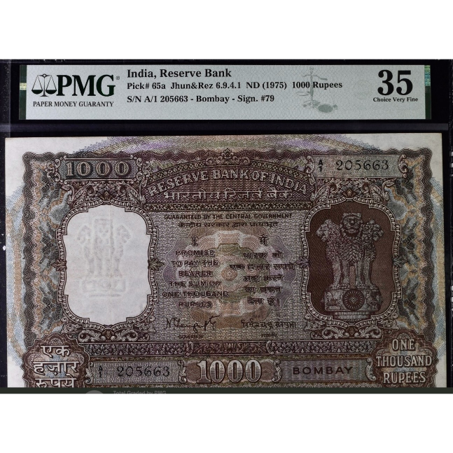 INDIA P.65a 1975 1000 Rupees Choice VF 35