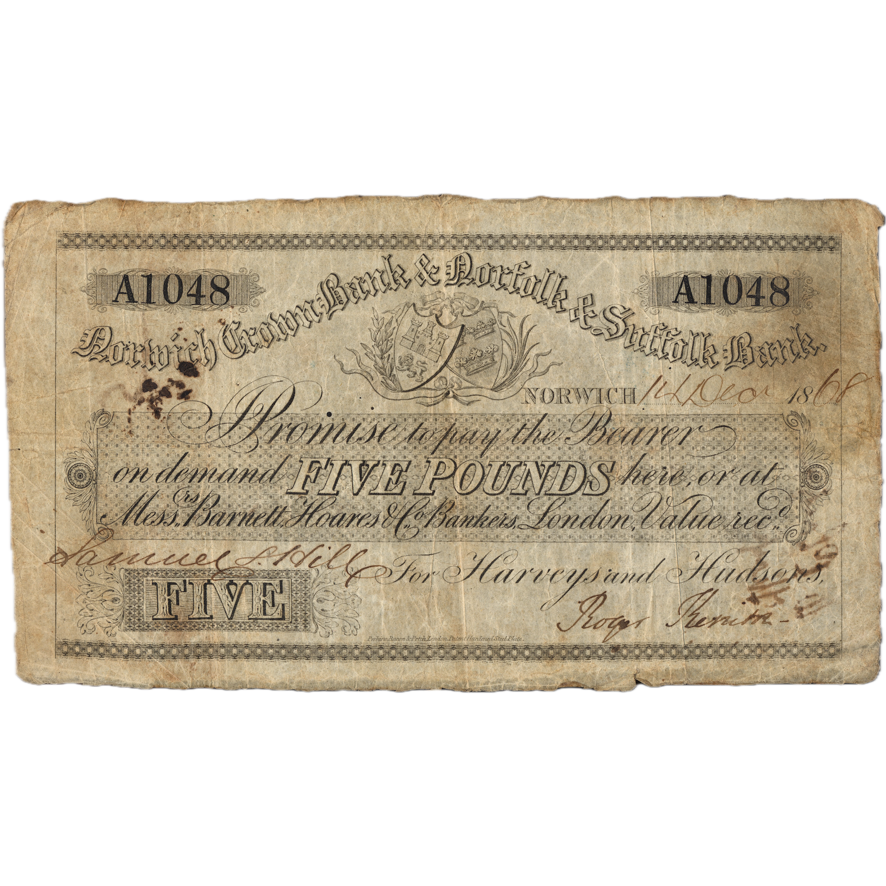 Plymouth Dock Bank 1819 £1 banknote Outing 683d